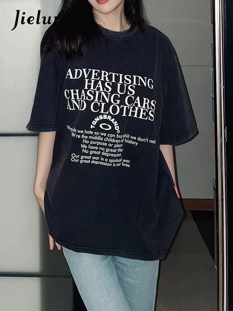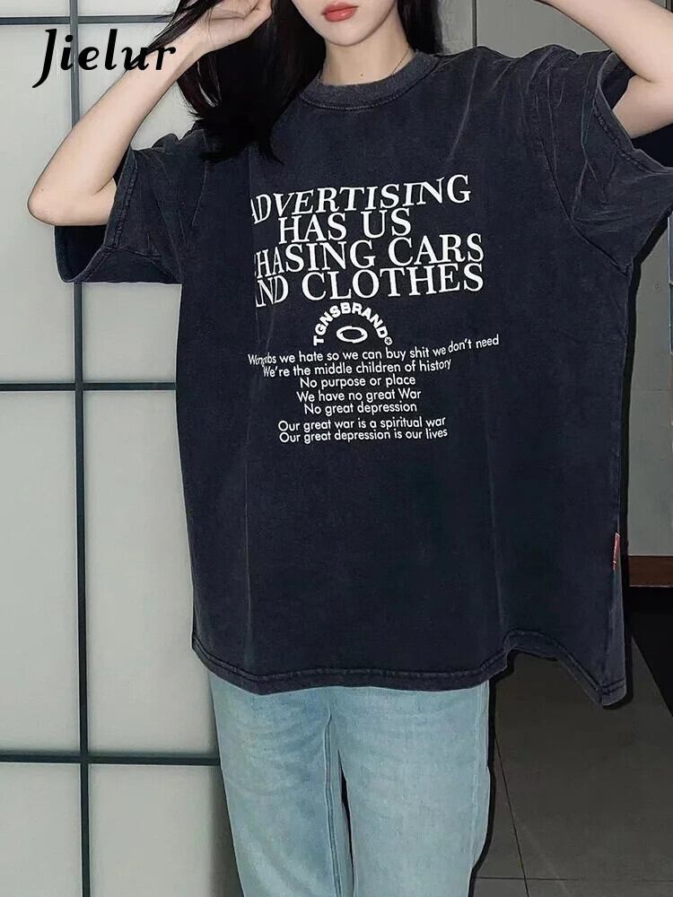 送料無料 Jielur 夏スリム Sweet Chicly Womne の Tシャツルーズ Tシャツ女性黒シンプルなベーシックトップ ブラック 大人ガーリー スウィート キュート カジュアル サマー 夏物 AE12188787832789334030