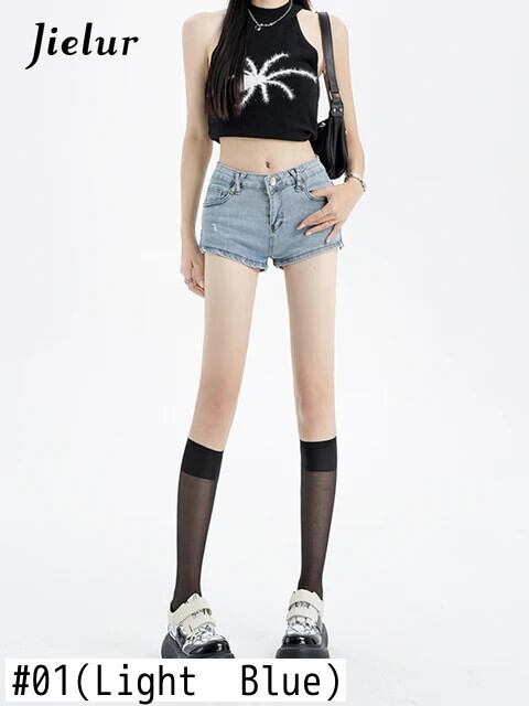 送料無料 Jielur 夏セクシーなデニムショーツ女性スリムスプリットベーシック女性のショーツライトブルーストリートシックな若いショーツ サマー 夏物 ブルマー AE12188787874913342095