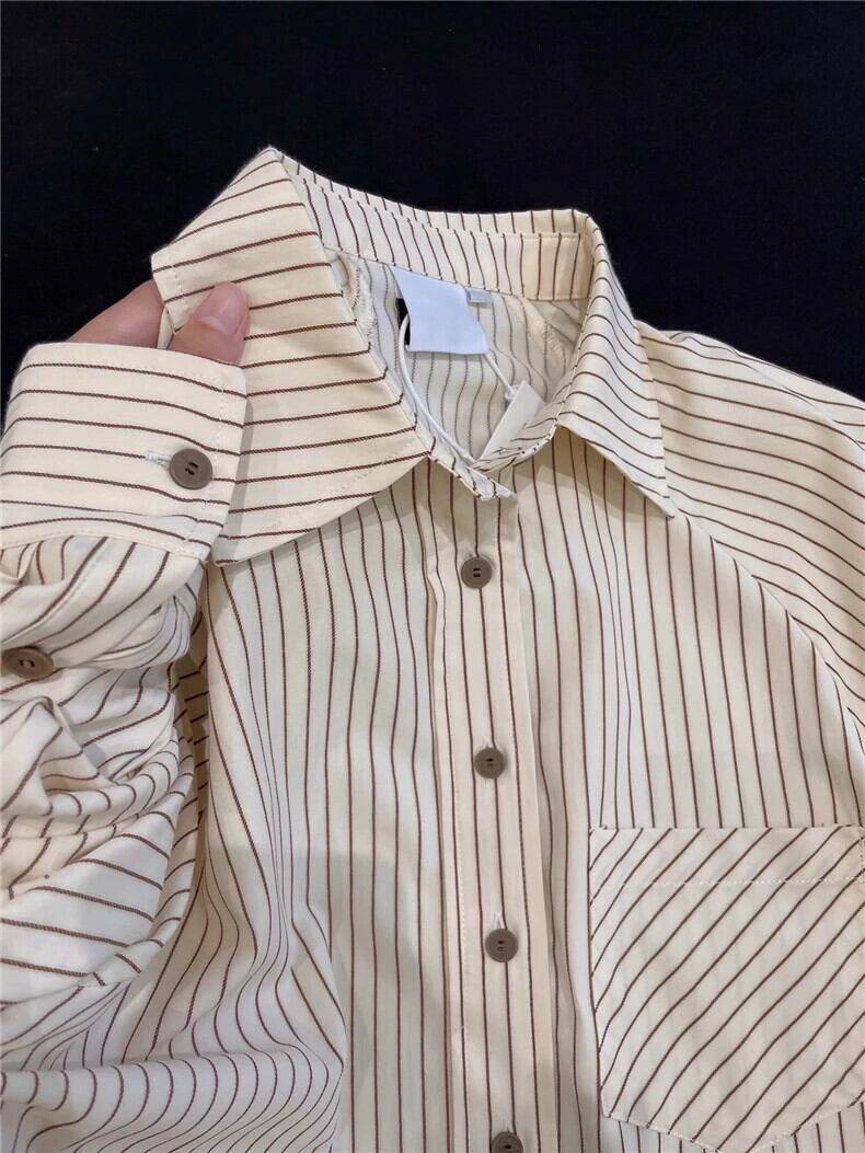 送料無料 Jielur 秋のフレンチストライプ長袖女性シャツルーズシャツ女性シンプルベーシックストリートトップ ロング オータム 秋物 AE12188787842363277513