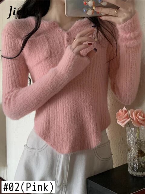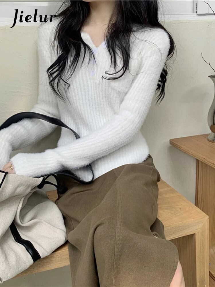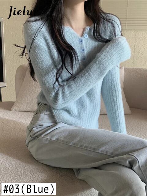 送料無料 Jielur 秋ルースプルオーバー女性ソリッドカラー甘いニットプルオーバーブルーブラックピンクホワイト女性プルオーバー 大人ガーリー スウィート キュート カジュアル オータム 秋物 AE12188787864851463309
