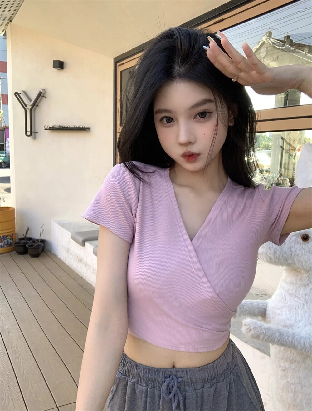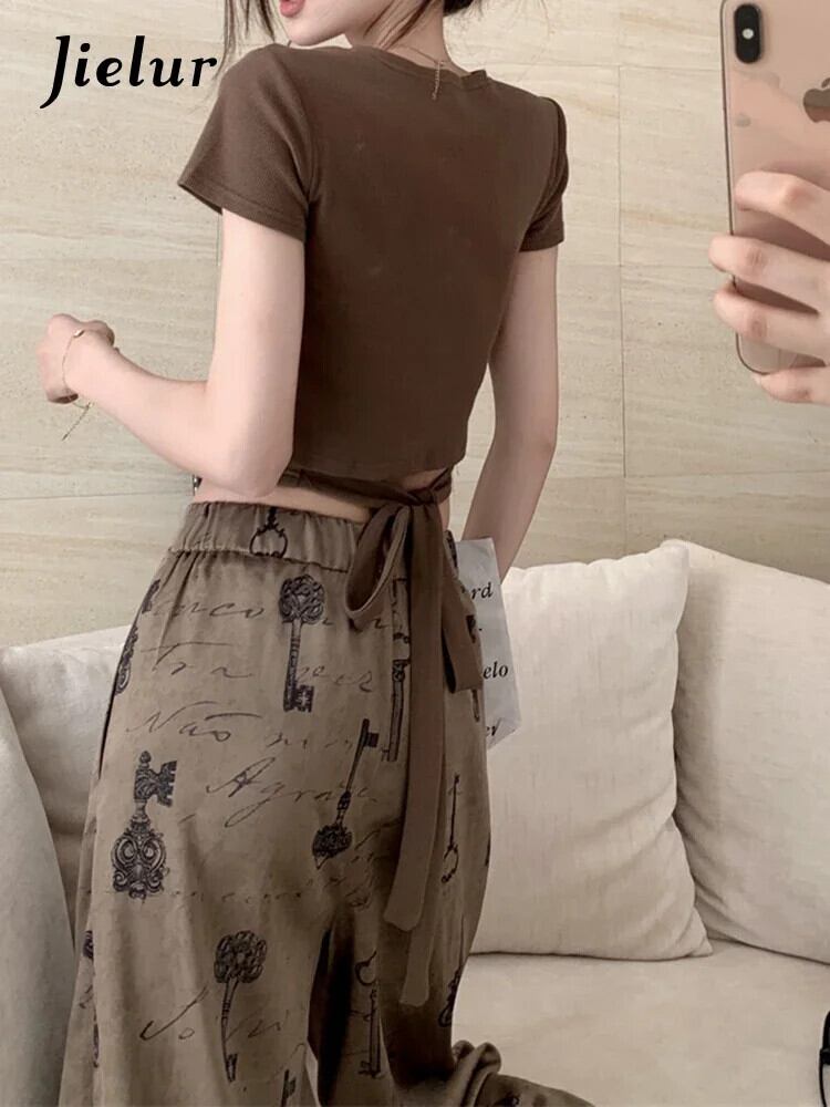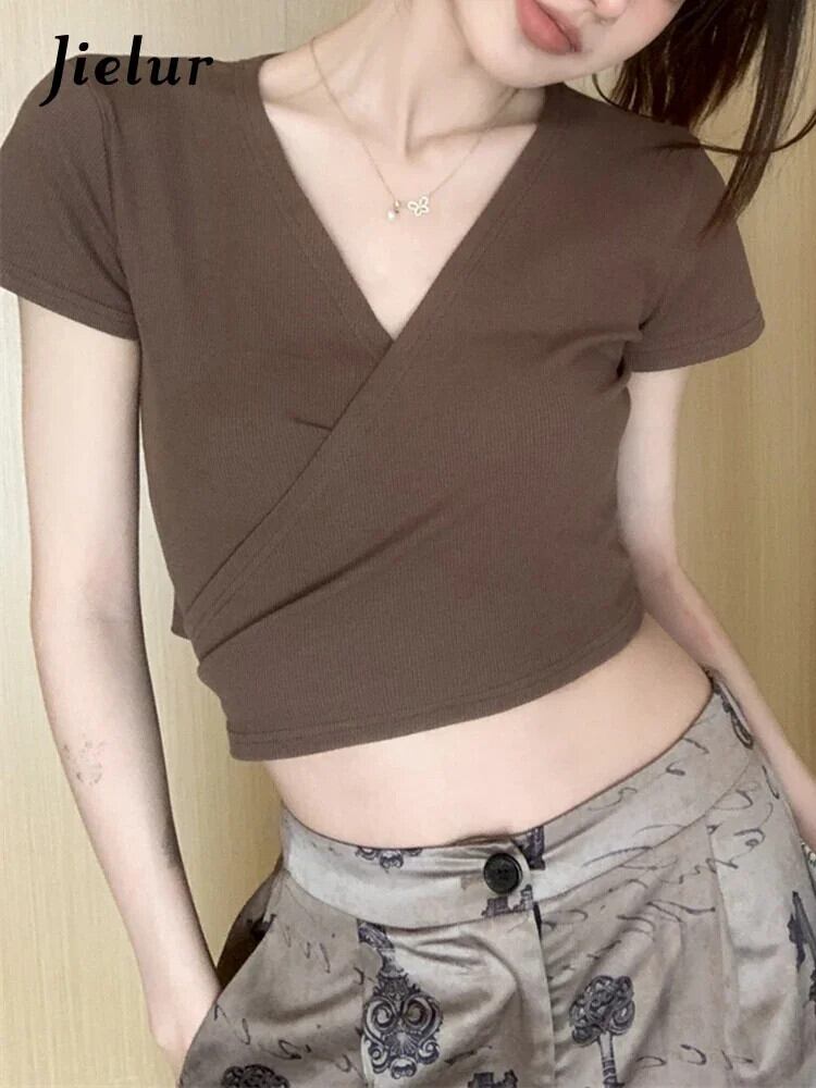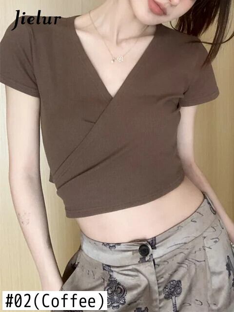 送料無料 Jielur 夏ソリッドカラーの女性の Tシャツセクシーな甘い若いクロップトップ女性コーヒーピンクスリムストリートシックな Tシャツ 大人ガーリー スウィート キュート カジュアル サマー 夏物 AE12188787890389662438