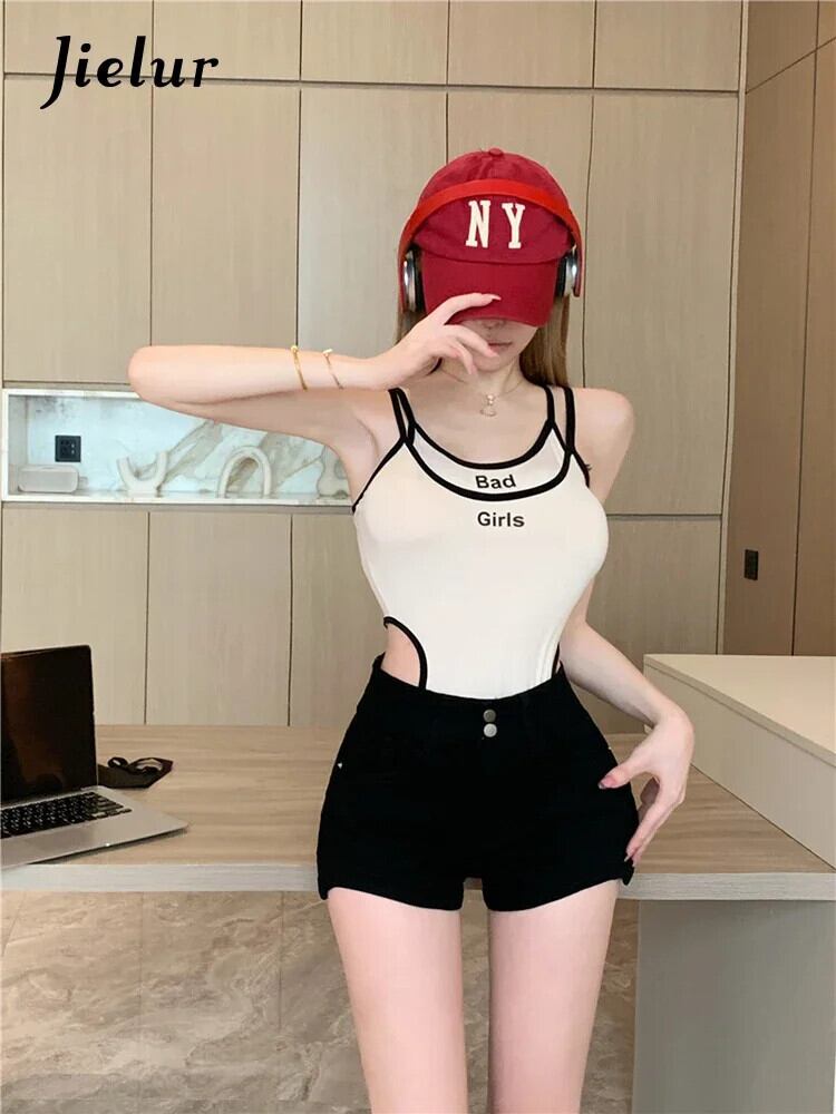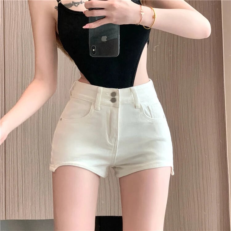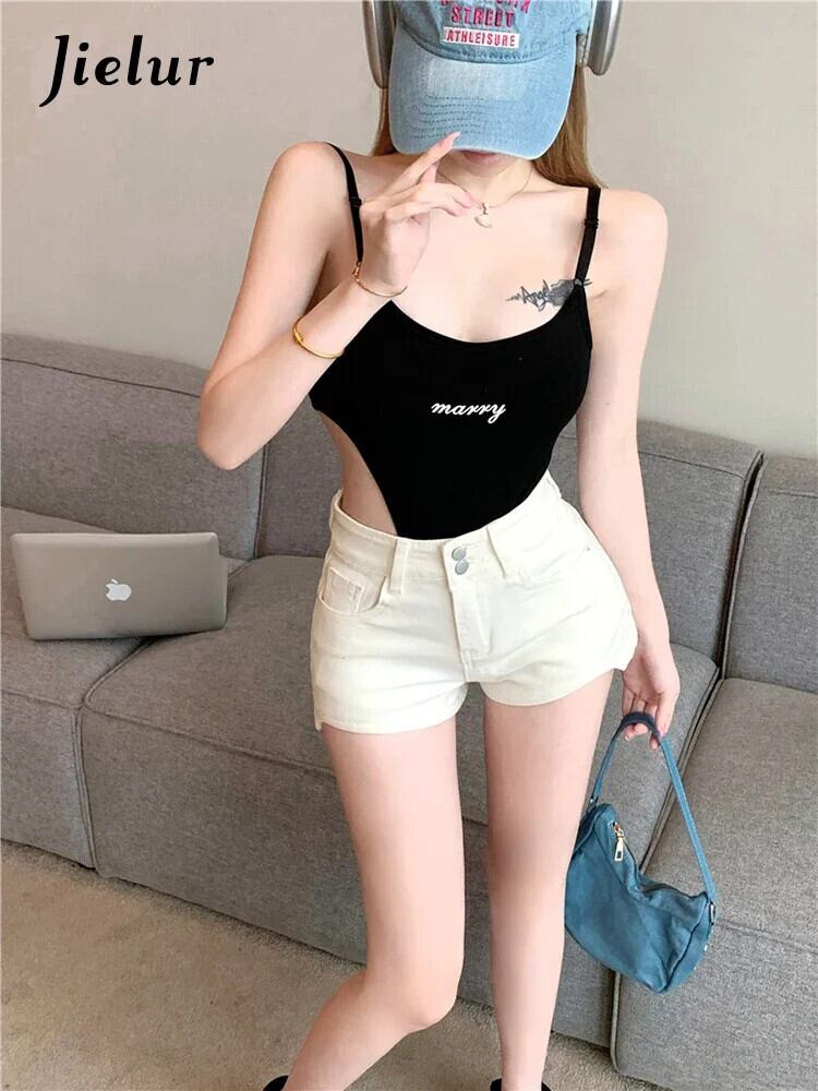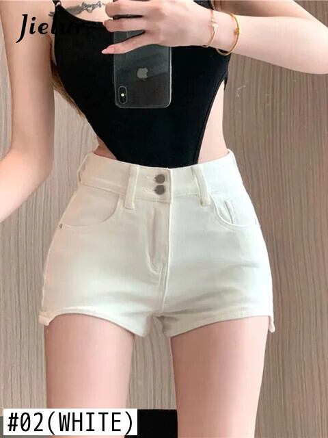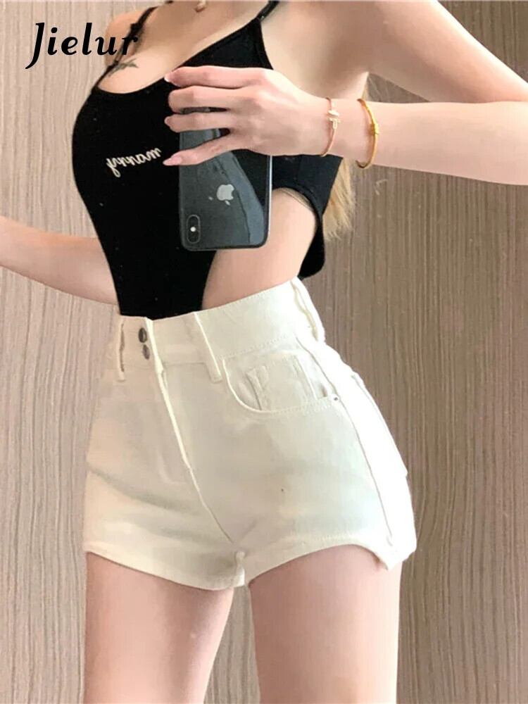 送料無料 Jielur ウエストスリムデニムショーツ女性ソリッドカラーシンプルベーシック女性のショーツ白黒セクシーなショーツ ホワイト ブラック ブルマー AE12188787836119641316