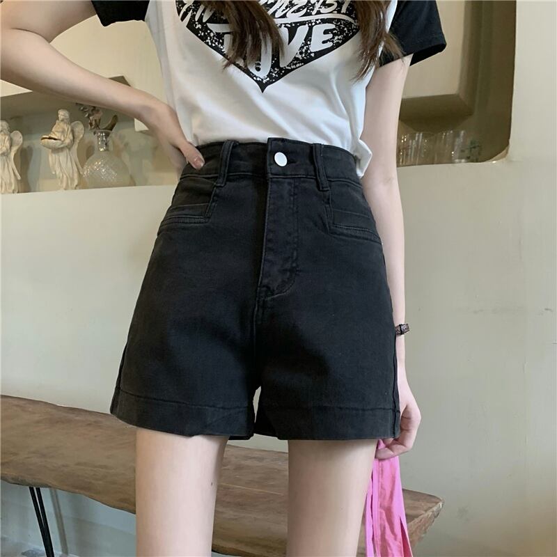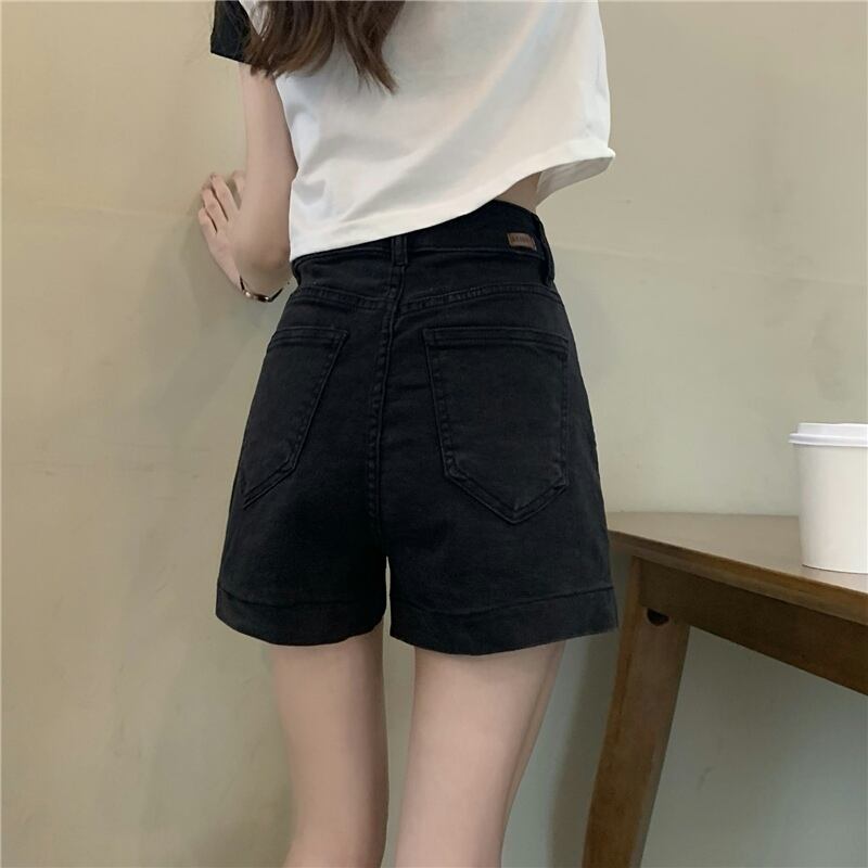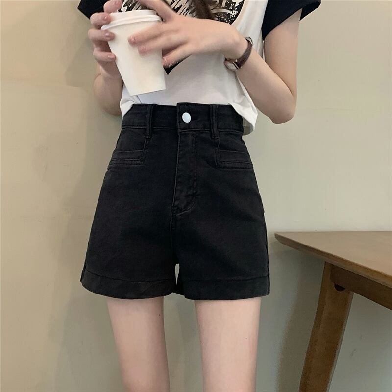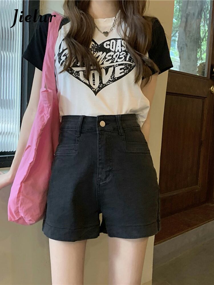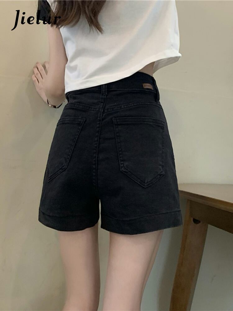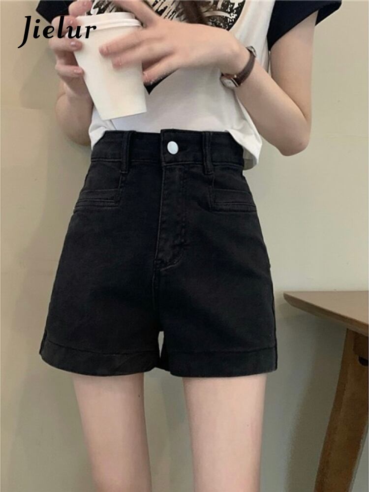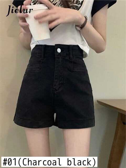 送料無料 Jielur 夏ソリッドデニムショーツ女性ウエストスリムシックに甘い女性ショーツ黒シンプルなベーシックショーツ ブラック 大人ガーリー スウィート キュート カジュアル サマー 夏物 ブルマー ソリッドカラー AE12188787827195758686