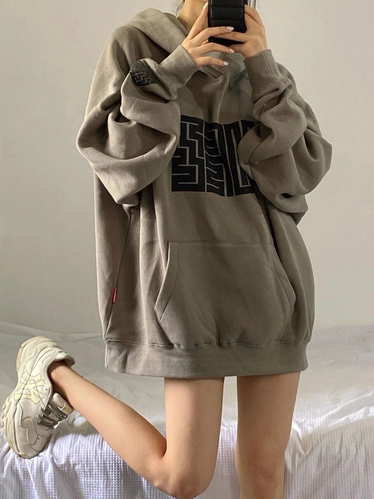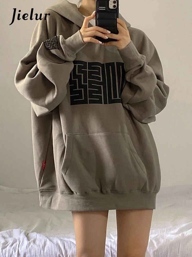 送料無料 Jielur 秋ポケットルーズ女性パーカー長袖プルオーバーフード付きグレートレーナー女性薄いストリート M-2XL ロング オータム 秋物 AE12188787895555409334