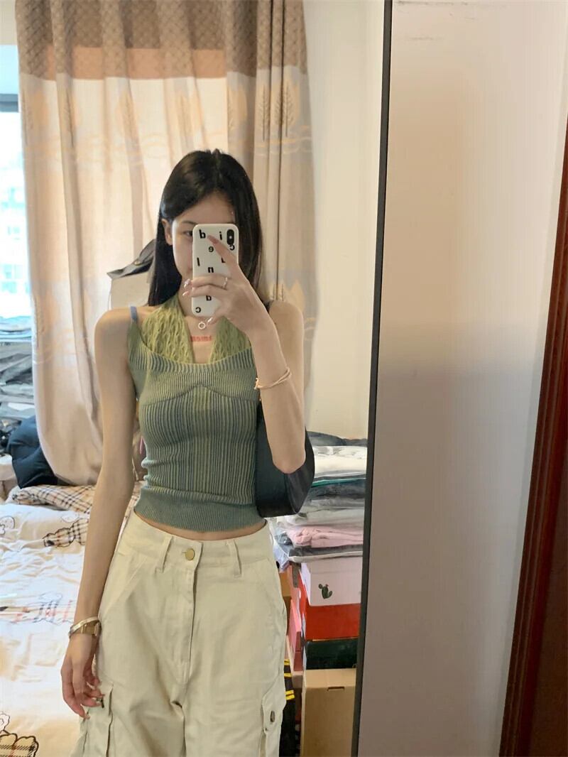 送料無料 Jielur 夏フェイクツーピースコントラストカラーの女性のタンク甘いタンク女性ルーズノースリーブトップ 大人ガーリー スウィート キュート カジュアル サマー 夏物 AE12188787857610976035