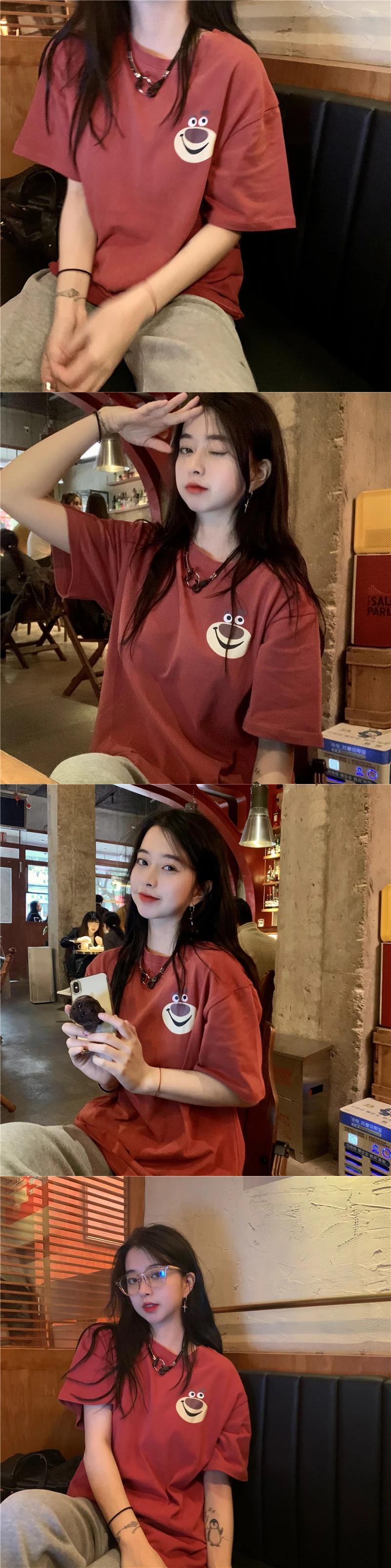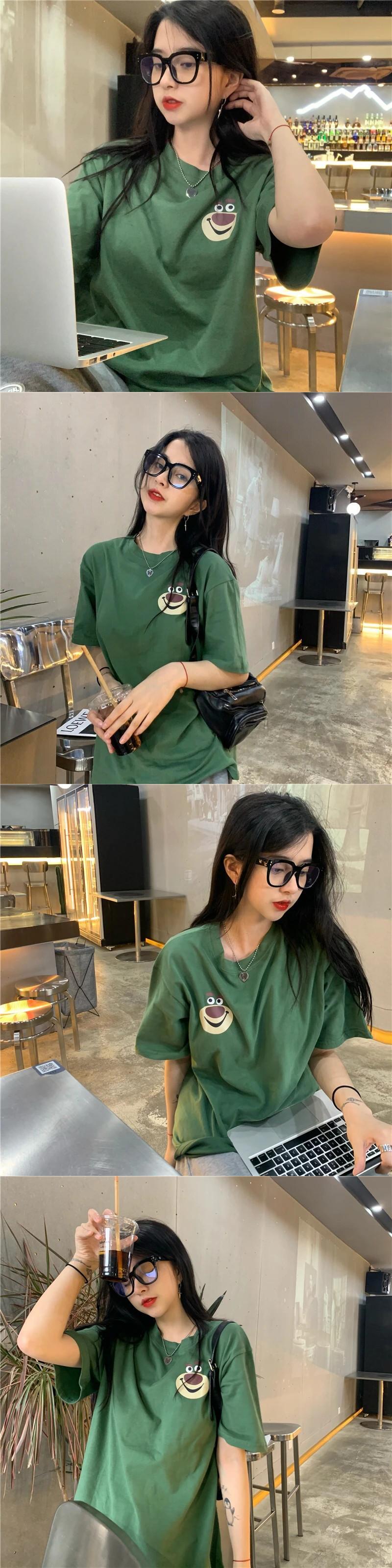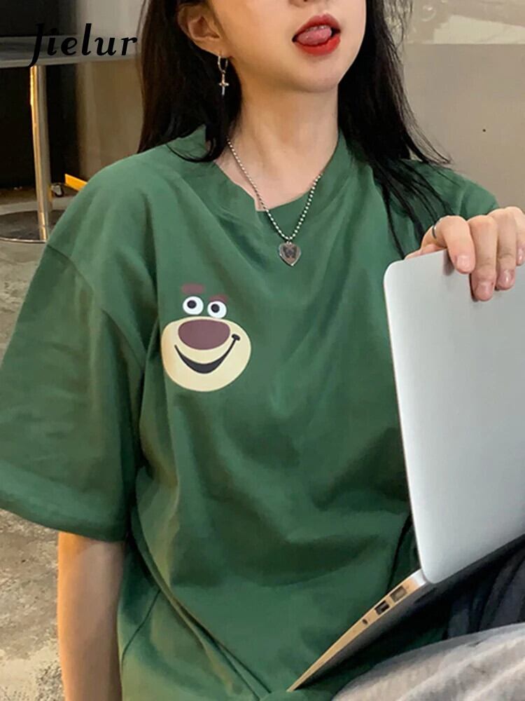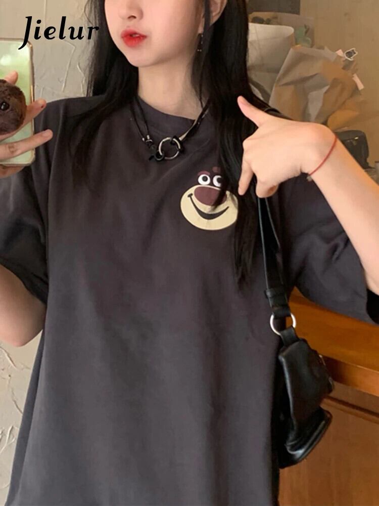 送料無料 Jielur 漫画の女性の Tシャツ O ネック綿の夏の Tシャツ半袖ルーズベーシック BF 原宿トップ Tシャツ ショート コットン ハーフスリーブ かわいい サマー 夏物 Oネック AE12188787884525518553