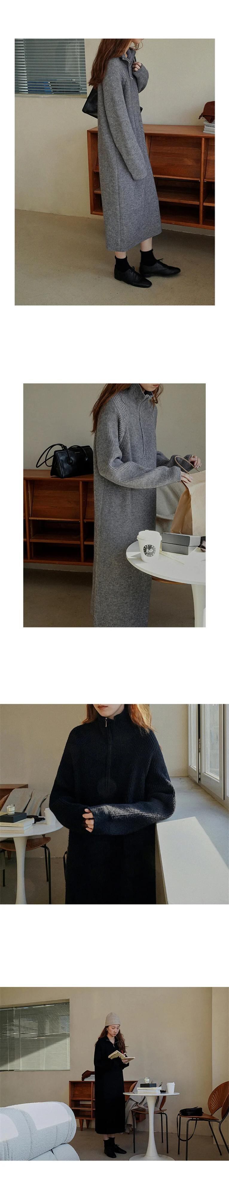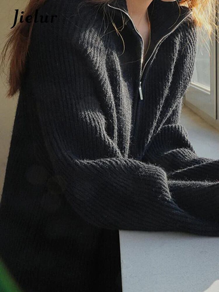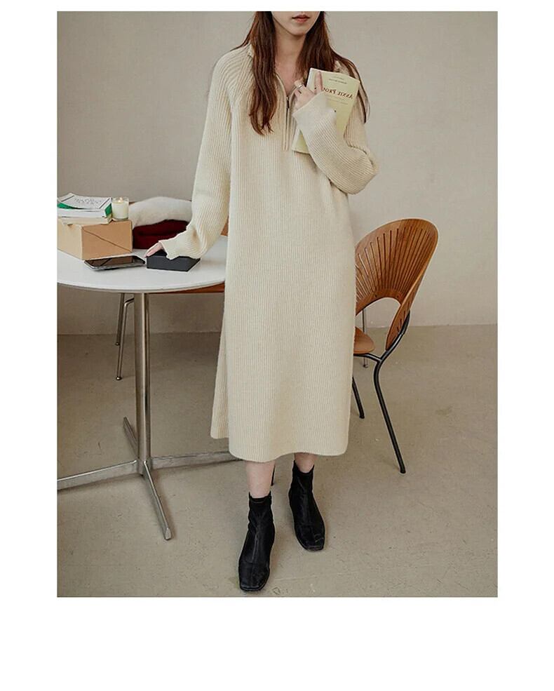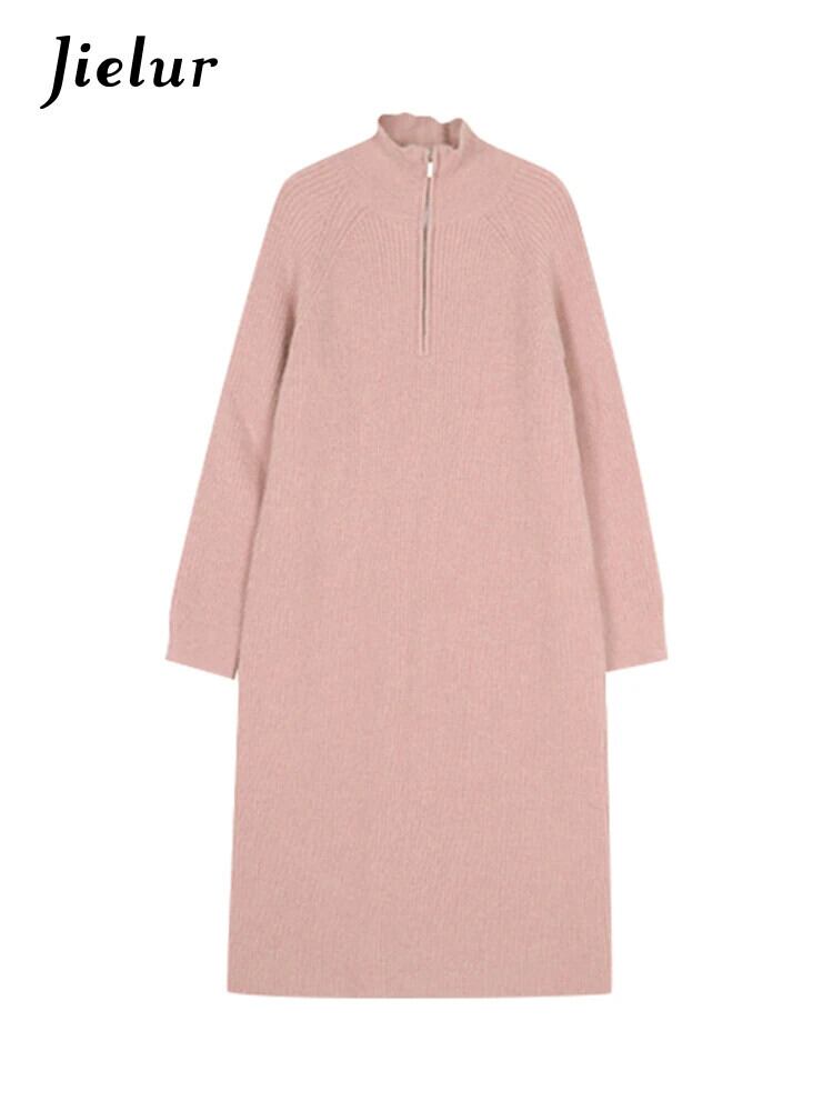 送料無料 Jielur 秋ピンクルーズジッパーロングドレス甘いソリッドカラー長袖ベーシック 4 色ニットセーター女性ドレス 大人ガーリー スウィート キュート カジュアル オータム 秋物 AE12188787833829353501