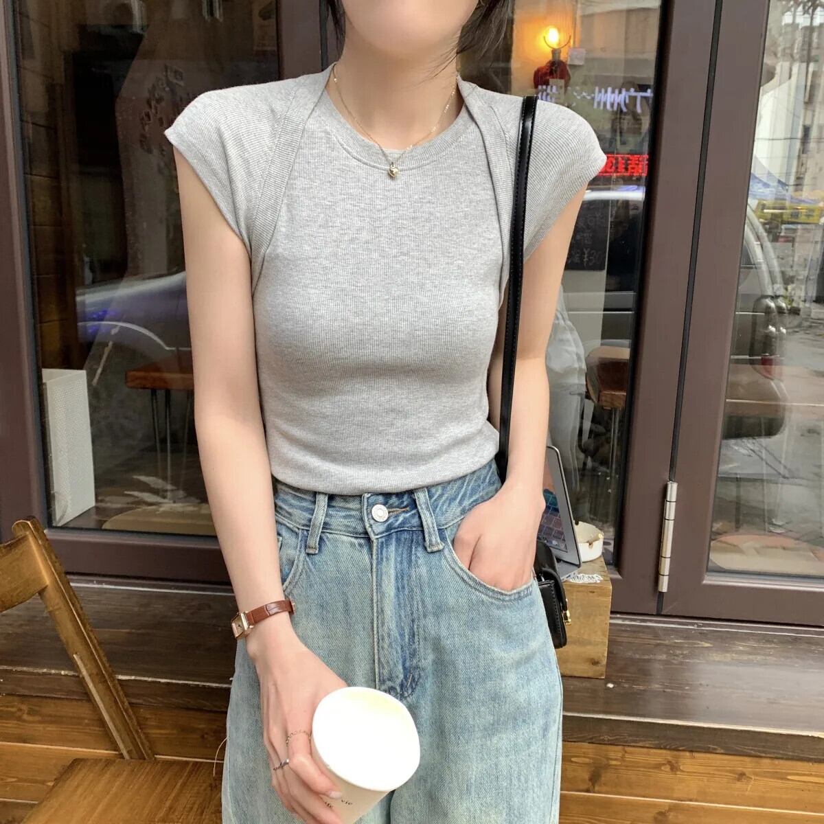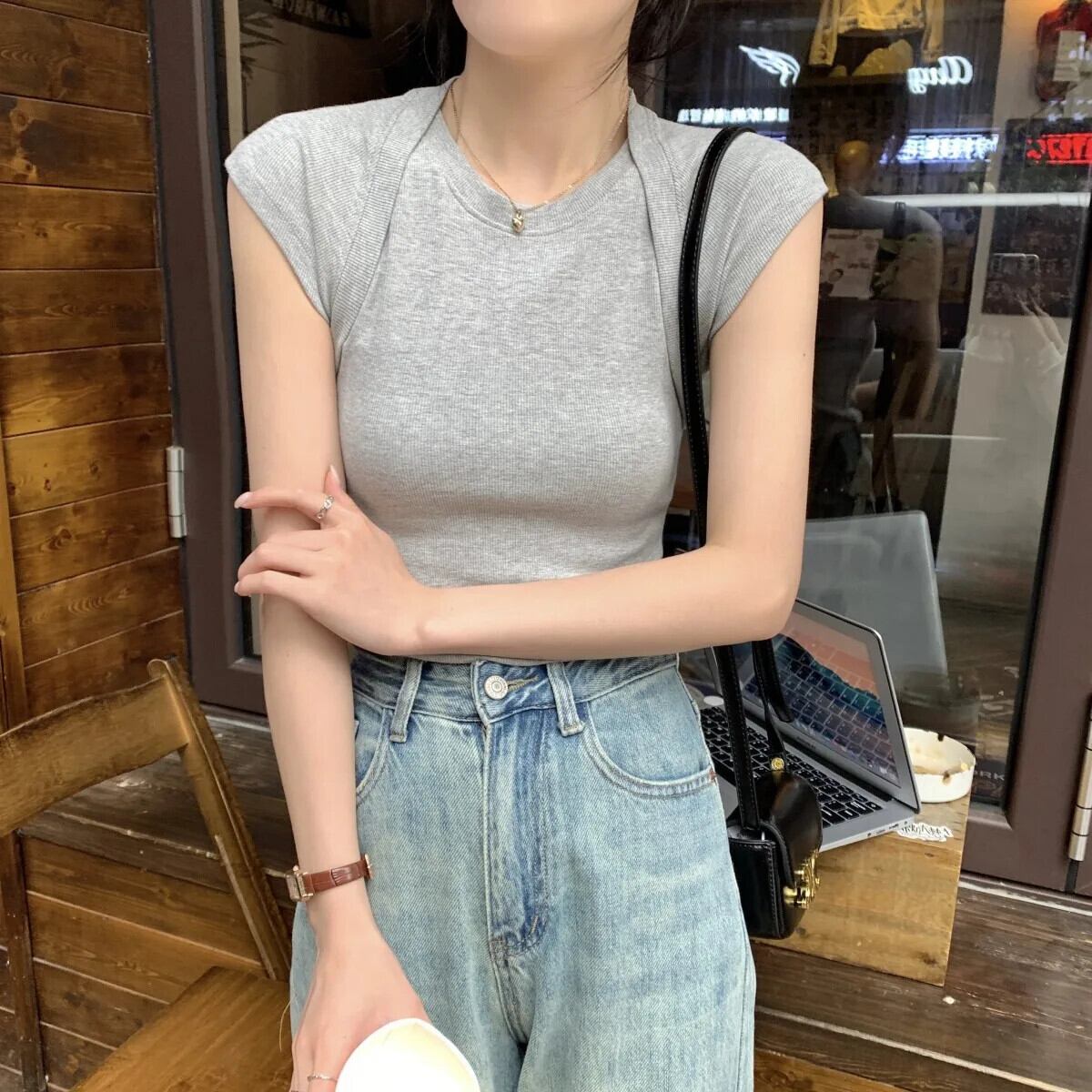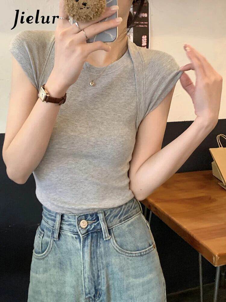 送料無料 Jielur 春夏スリム O ネック無地 Tシャツ女性の綿半袖 Chicly Tシャツルーズ Tシャツ コットン スプリング 春物 サマー 夏物 Oネック ソリッドカラー AE12188787833242213817