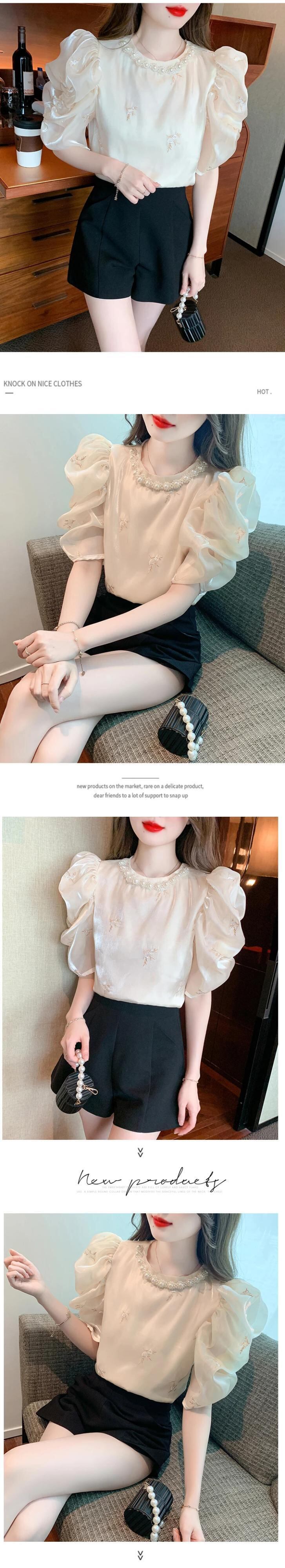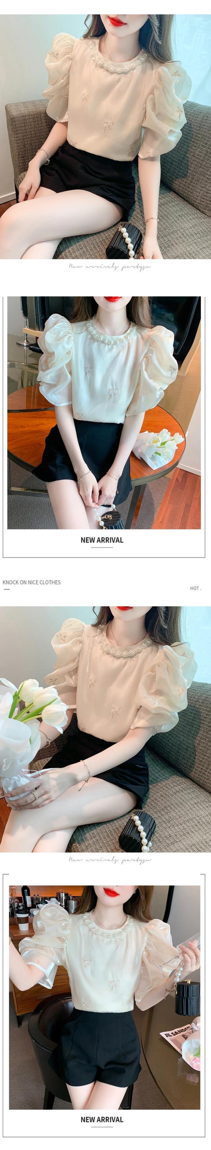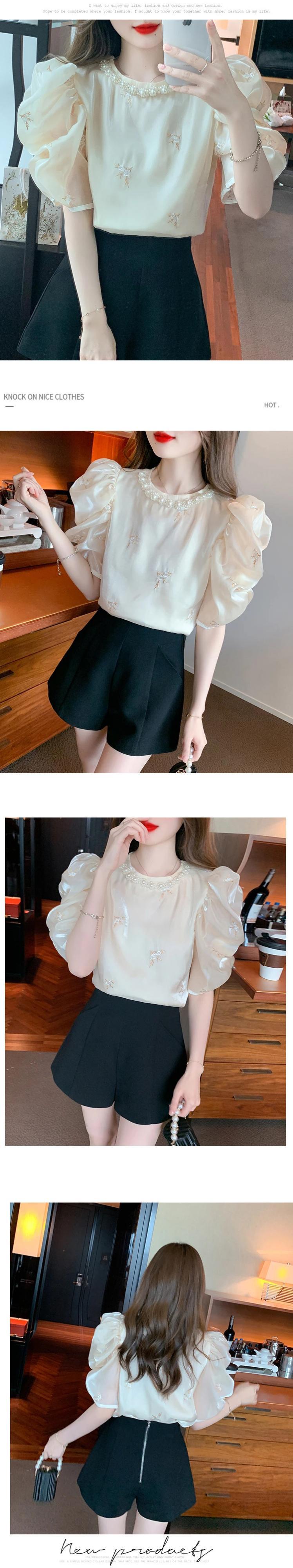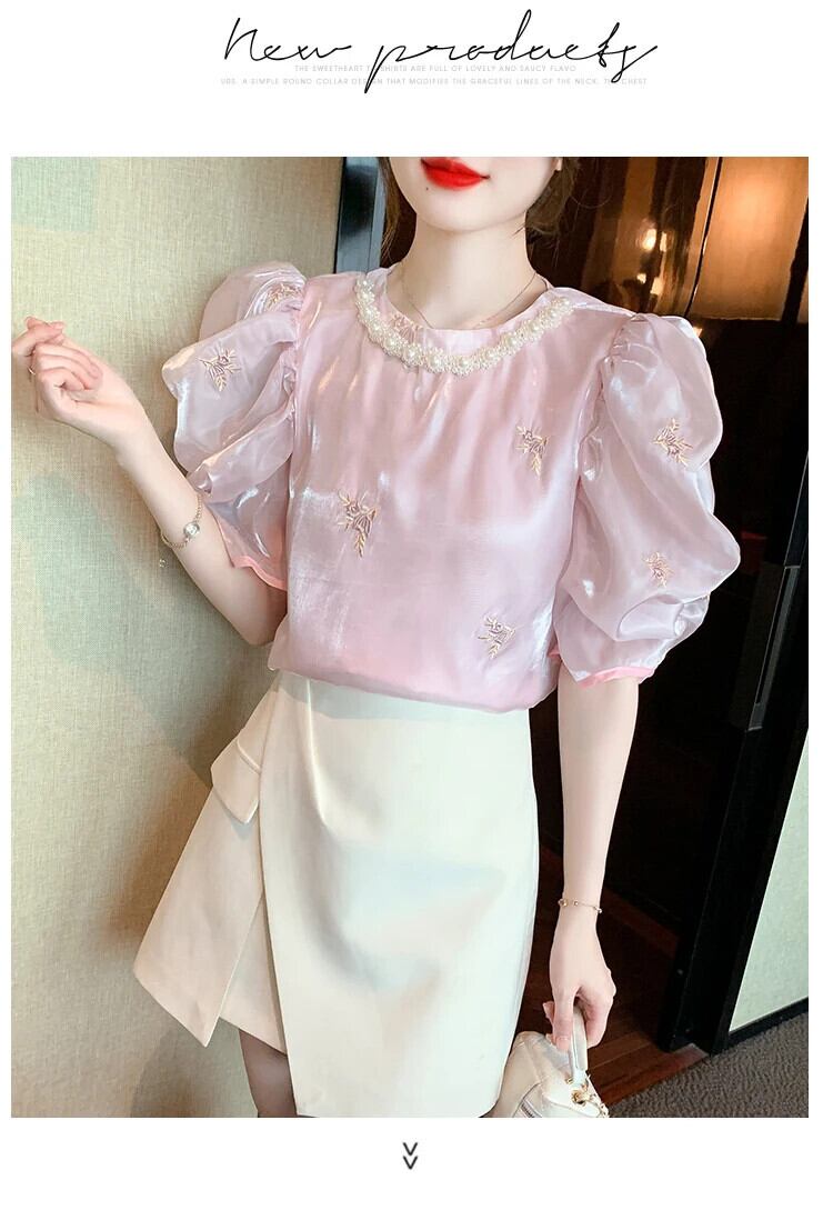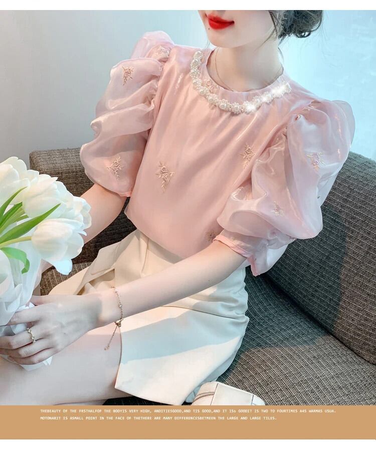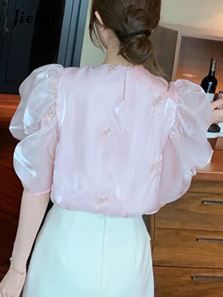 送料無料 Jielur 夏フレンチ刺繍女性ブラウス無地甘いブラウス女性アプリコットピンク LooseO-ネックトップ 大人ガーリー スウィート キュート カジュアル サマー 夏物 Oネック ソリッドカラー AE12188787883499268830