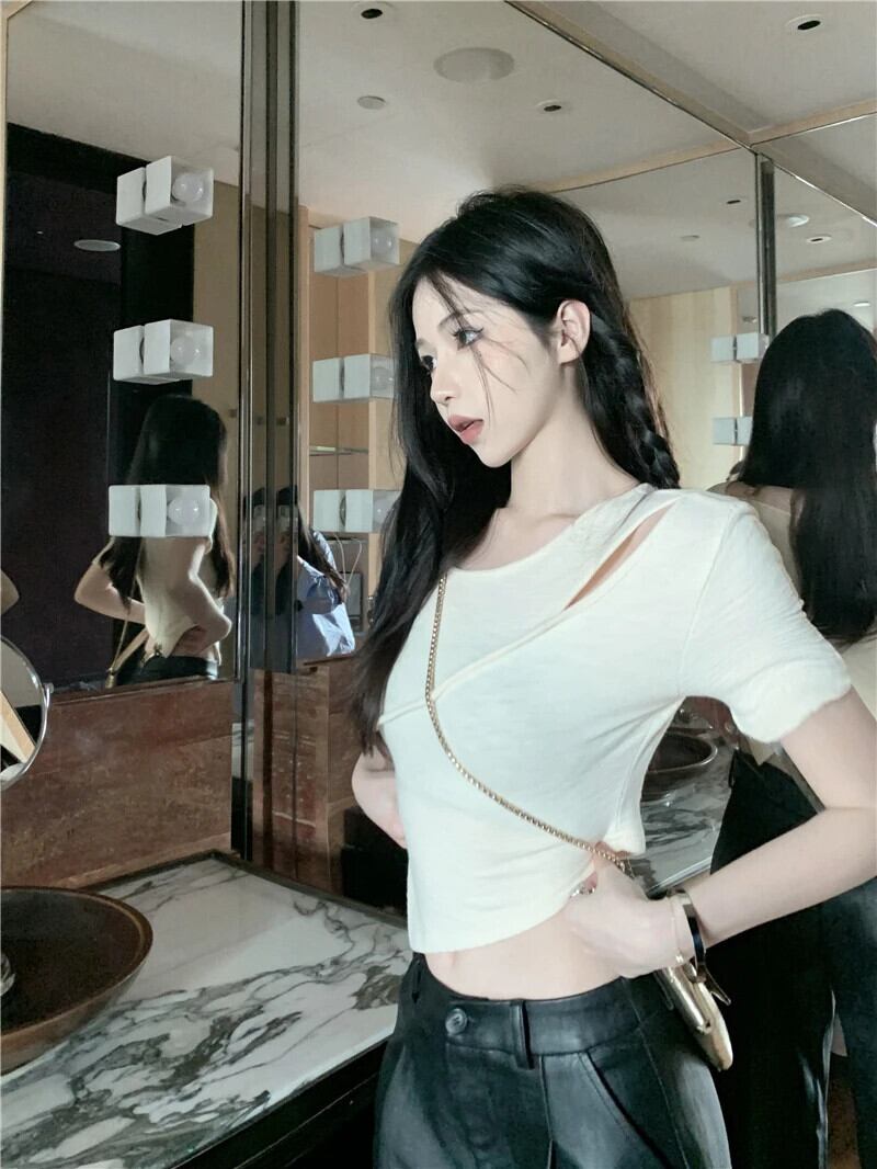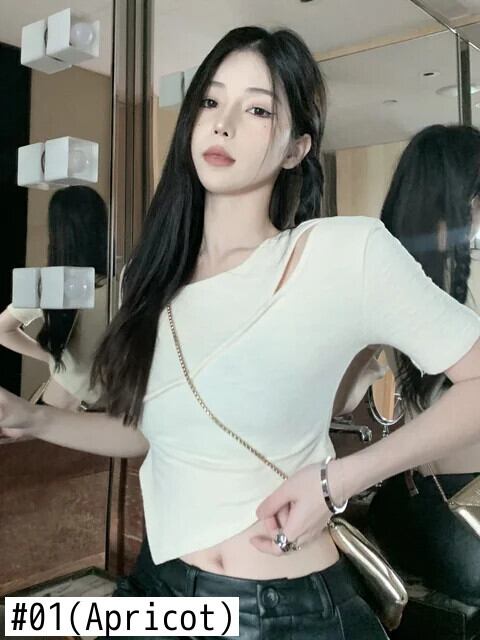 送料無料 Jielur 夏 Y2K セクシーな Tシャツ中空アウト甘いスリムソリッドカラーの女性の Tシャツブラックピンクアプリコットシンプルな O ネックトップ女性 大人ガーリー スウィート キュート カジュアル サマー 夏物 Oネック AE12188787895901606203