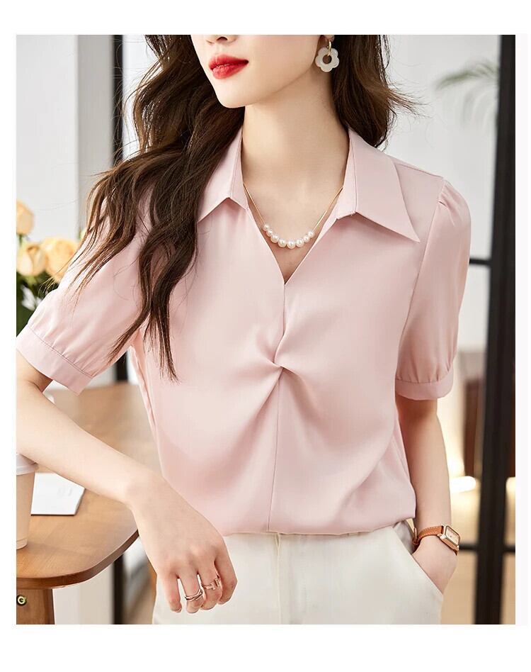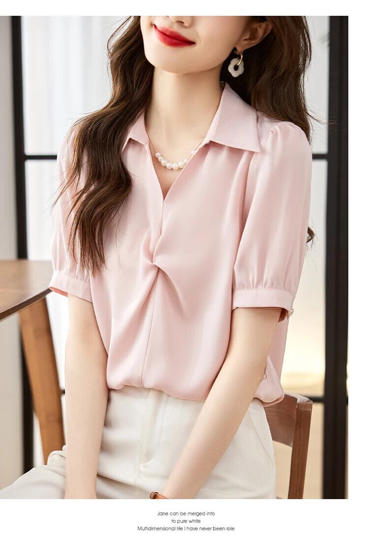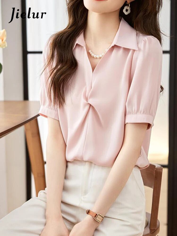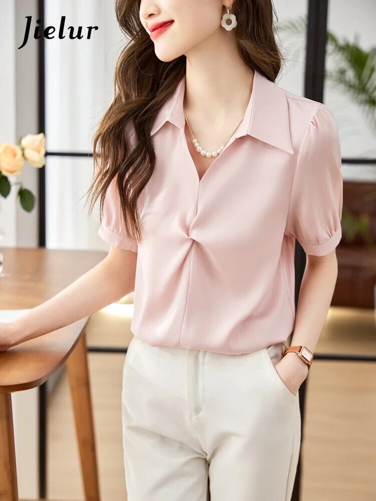 送料無料 Jielur 夏ソリッドカラーの女性ブラウススリムスイートブラウス女性ピンクパフスリーブシフォントップ 大人ガーリー スウィート キュート カジュアル サマー 夏物 AE12188787875200299563