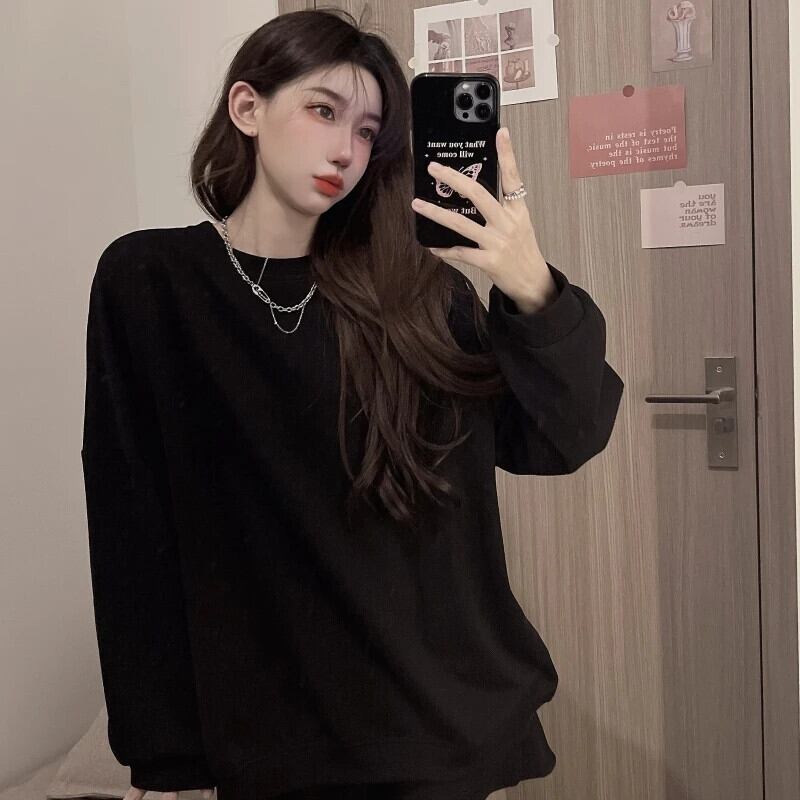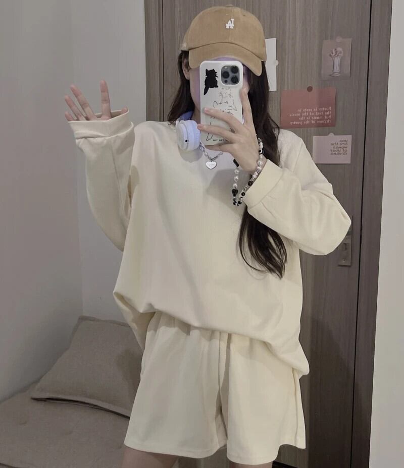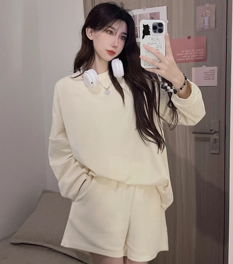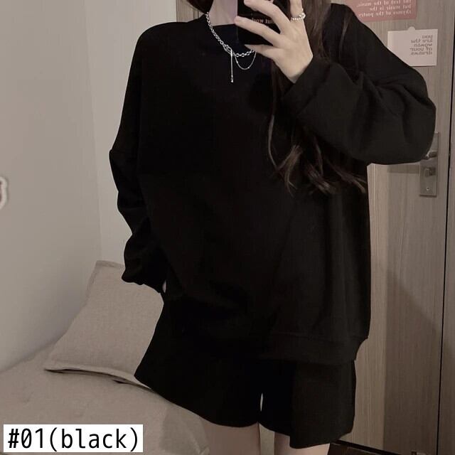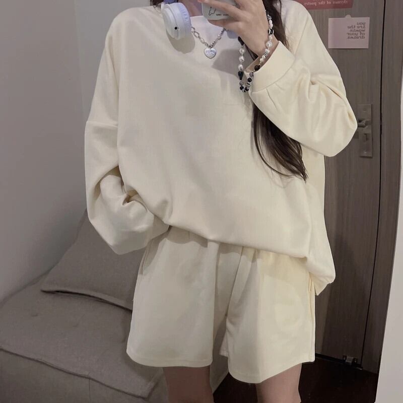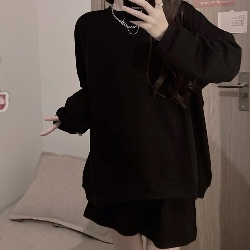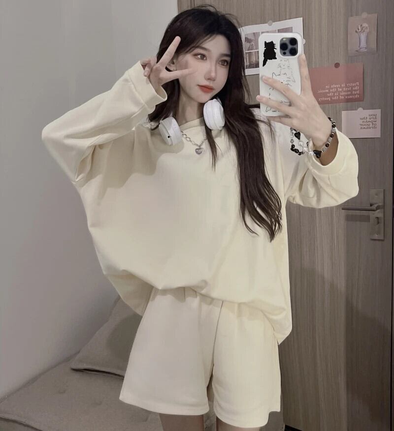 送料無料 Jielur ツーピースソリッドカラールーズパーカーベーシックシンプル 2 色の女性パーカーストリート女性ショートスウェットパンツ AE1218878782694347614