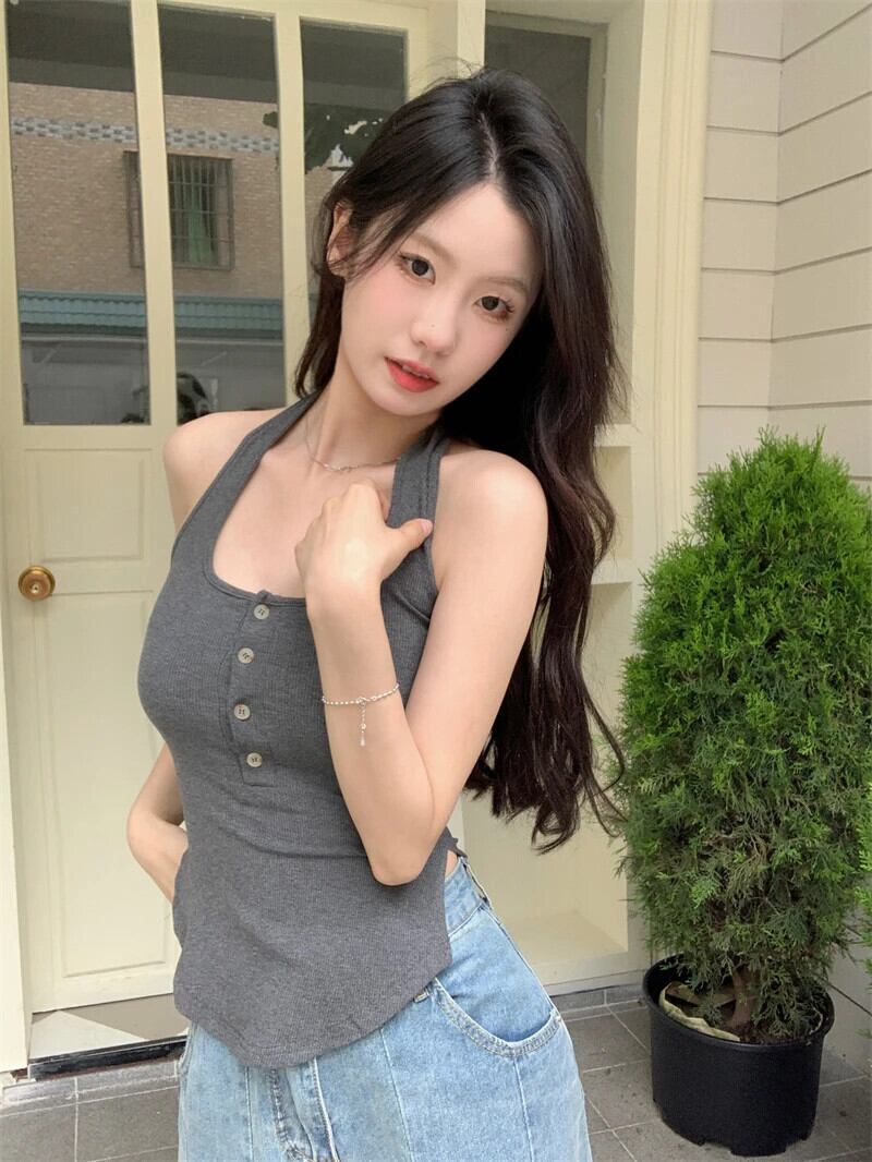 送料無料 Jielur 夏無地セクシーな女性のキャミソールホルタースリムシックなキャミソール女性グレーアプリコットシンプルなノースリーブトップ サマー 夏物 ソリッドカラー AE12188787842591801303