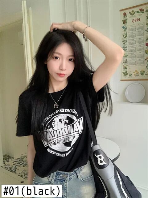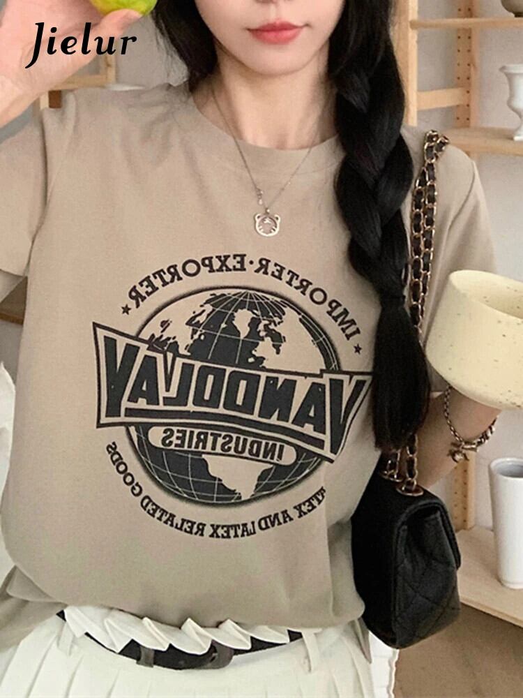 送料無料 Jielur 夏アメリカンスリム女性 Tシャツ甘いシンプルなベーシック Tシャツ女性白黒グリーンストリートシックなトップ ホワイト ブラック 大人ガーリー スウィート キュート カジュアル サマー 夏物 AE12188787821092298449