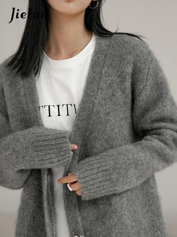 送料無料 Jielur 秋緩い無地カーディガン女性甘いニット女性カーディガングレーシンプルなカーディガン 大人ガーリー スウィート キュート カジュアル オータム 秋物 ソリッドカラー AE12188787819072447550
