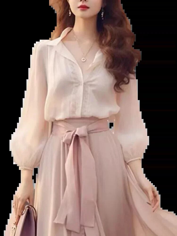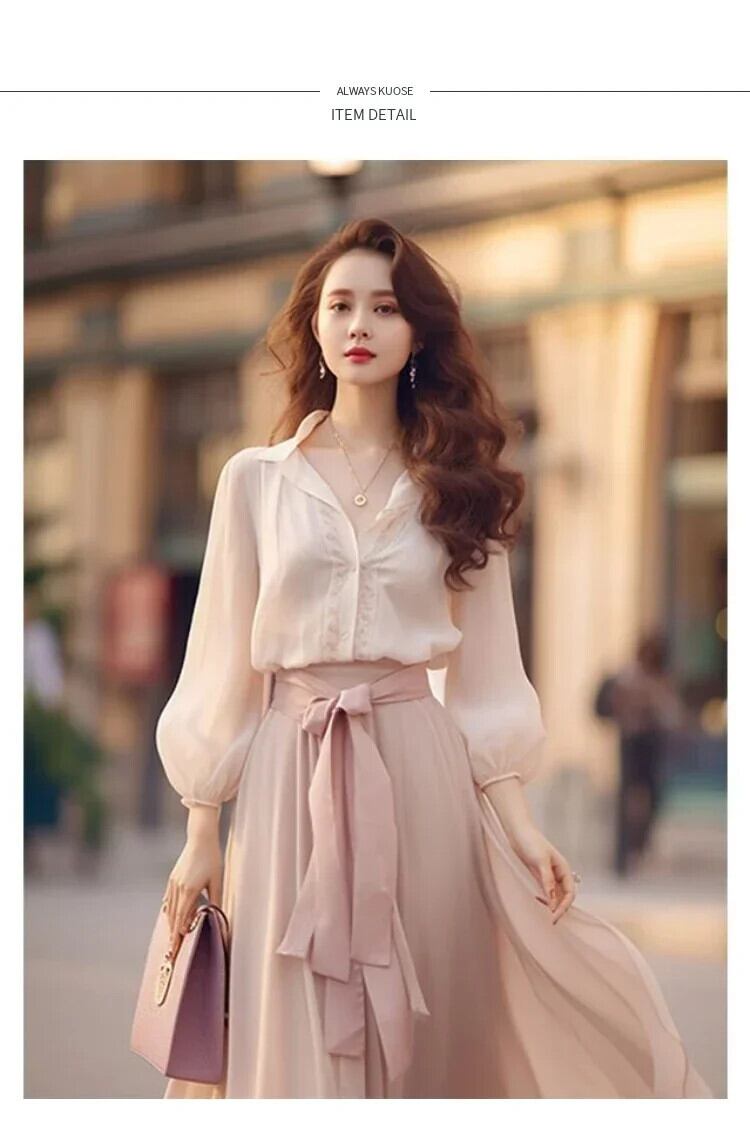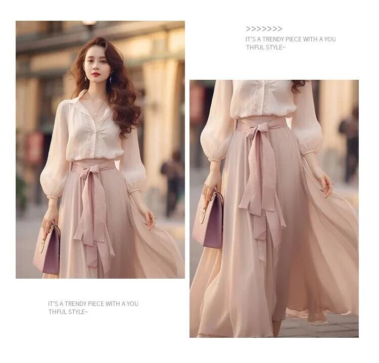 送料無料 レトロルーズ長袖ストリートスタイルソリッドカラーツーピースセットフランスの女性のドレス甘いスリムツーピース ロング 大人ガーリー スウィート キュート カジュアル AE12188787879131543895
