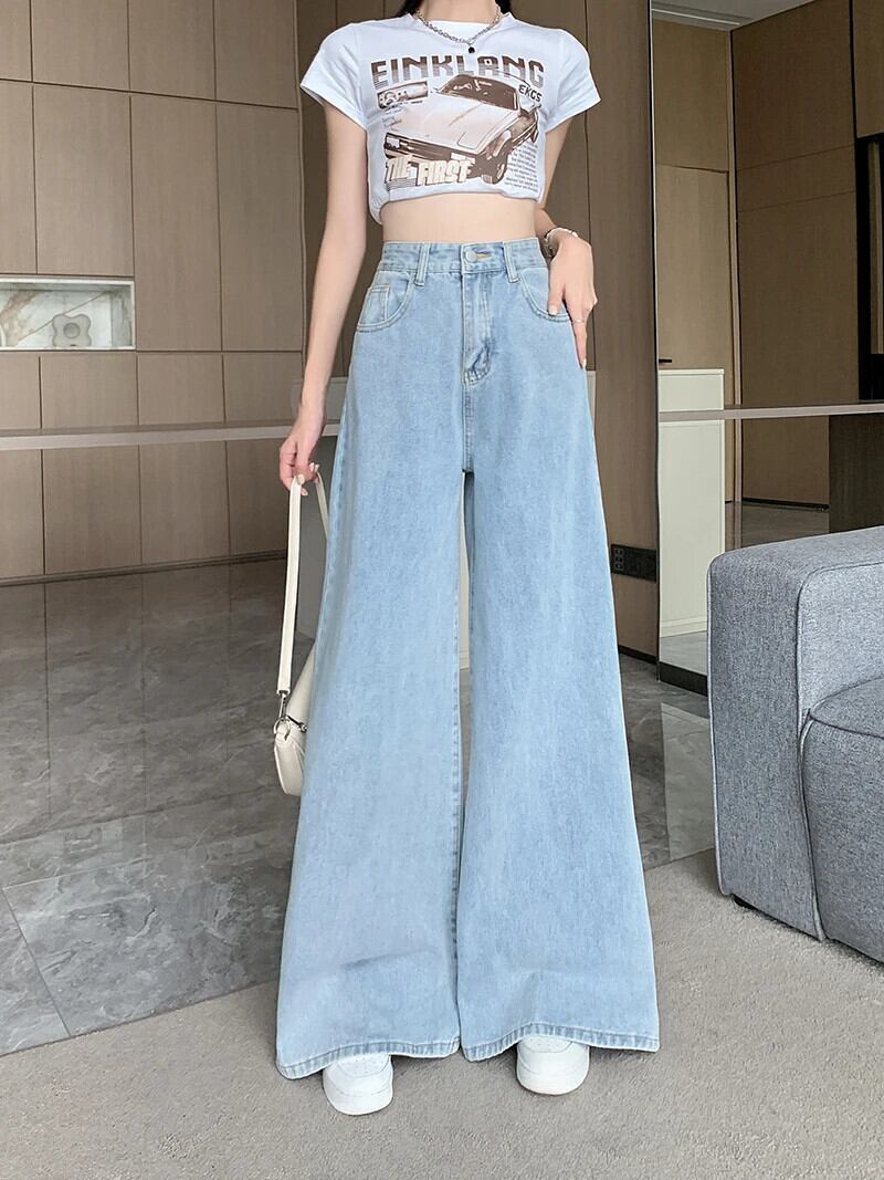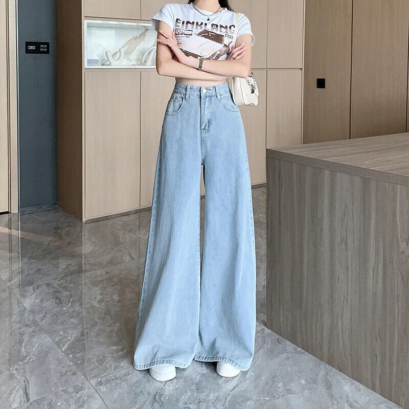 送料無料 Jielur ヴィンテージジーンズ女性スタイルデニムパンツウエストワイド脚ジーンズ女性ルーズストリートジーンズ ワイドレッグ ワイドパンツ ビンテージ AE12188787816468906862