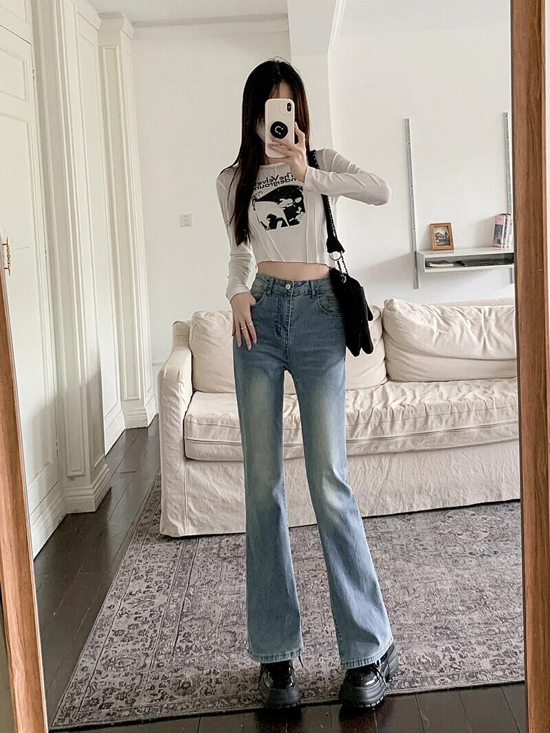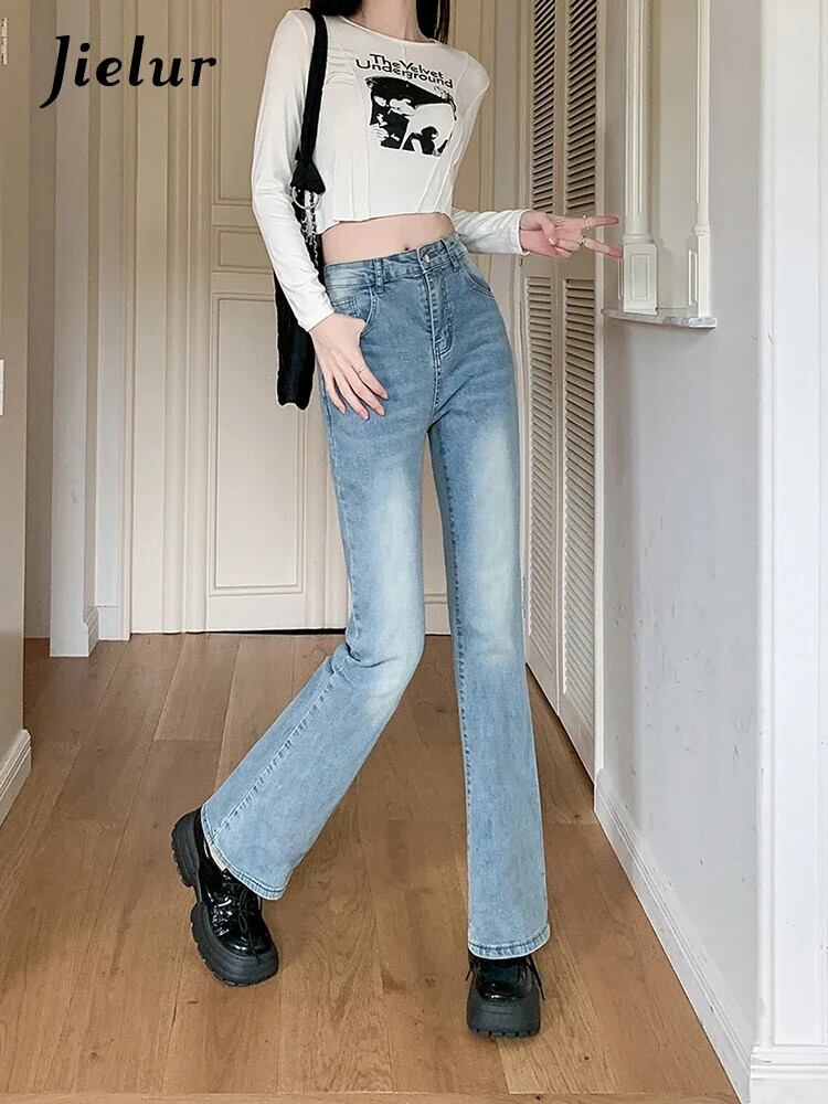 送料無料 Jielur アメリカンヴィンテージウエストスリム女性ジーンズ秋ストリート女性ジーンズブルーシンプルなベーシックチシリーパンツ オータム 秋物 ビンテージ AE12188787847704393557
