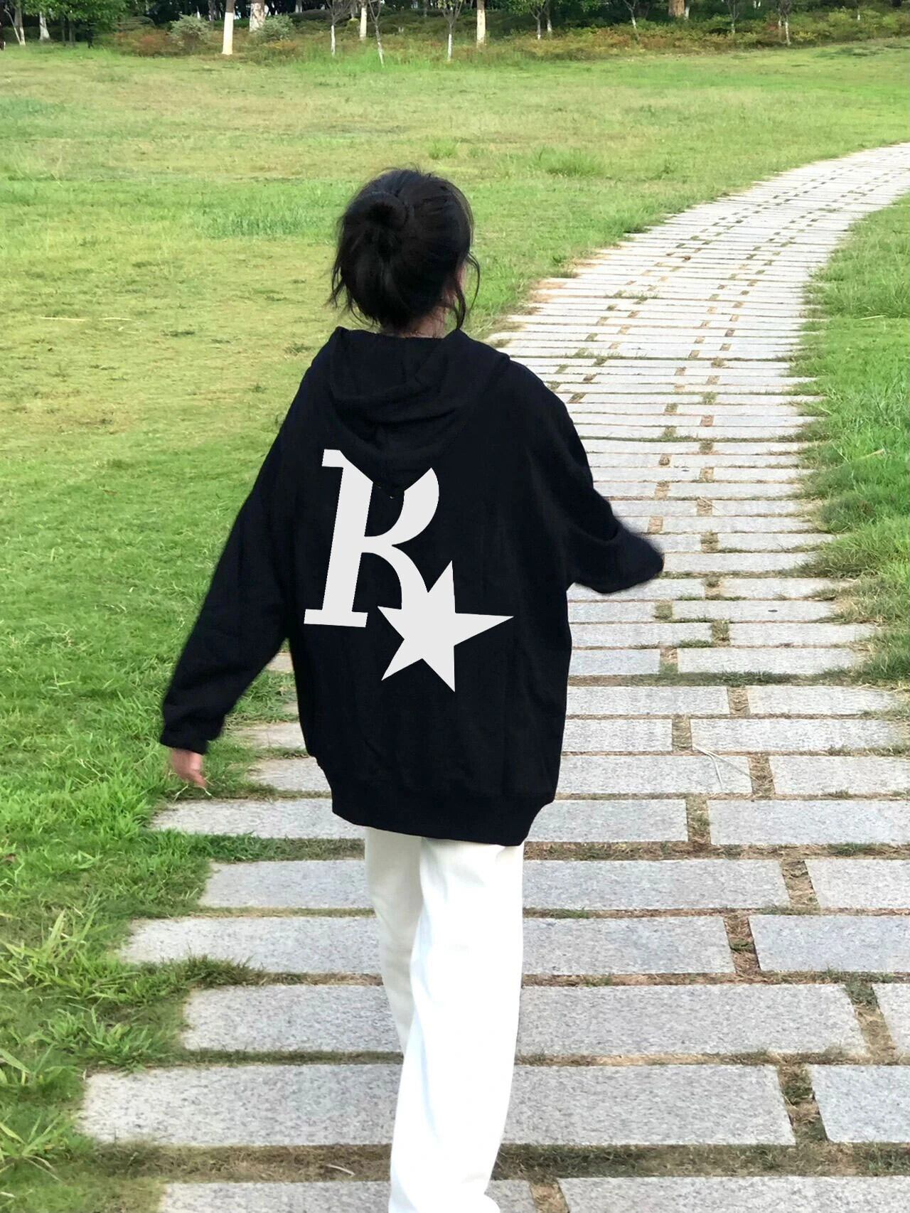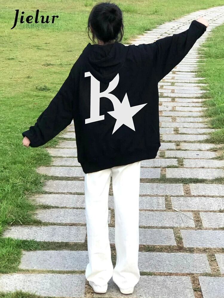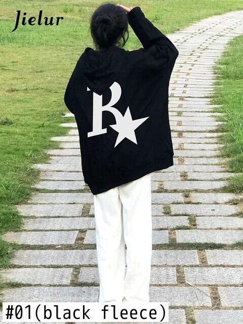 送料無料 Jielur 暖かいフリースパーカー女性の冬のレタープリントプルオーバールーズポケットフード付きジャケットシックなパーカースウェット M-XXL シャツ ウィンター 冬物 AE12188787825438113315