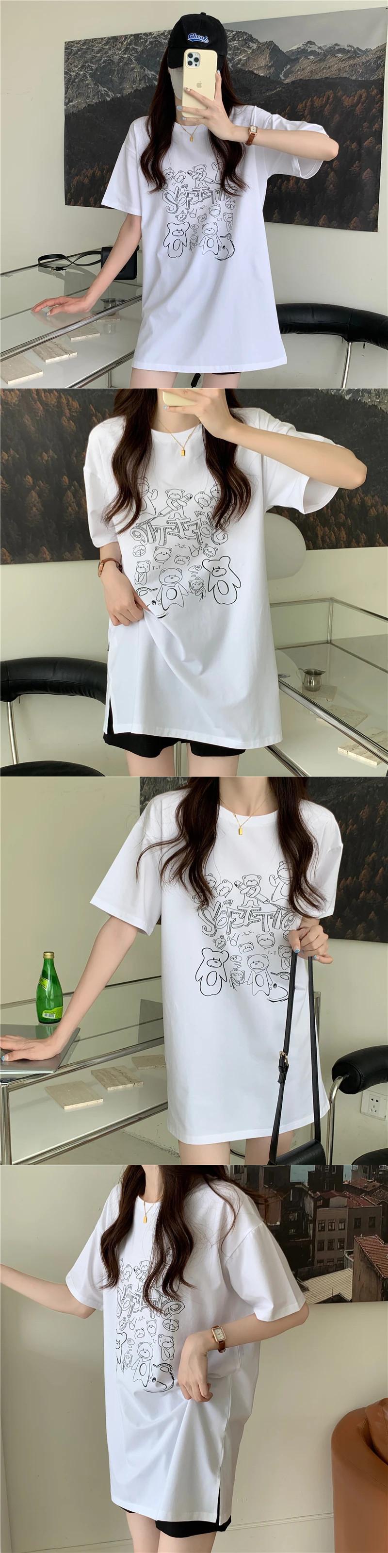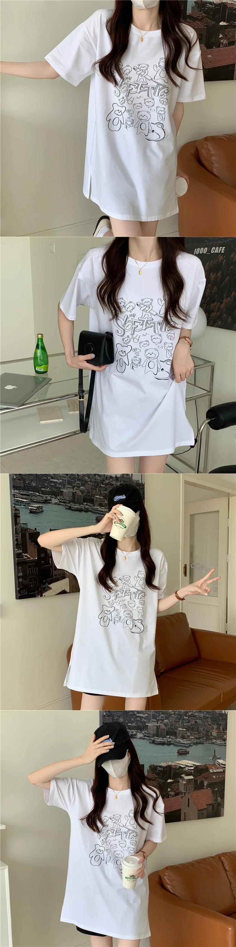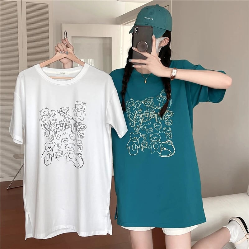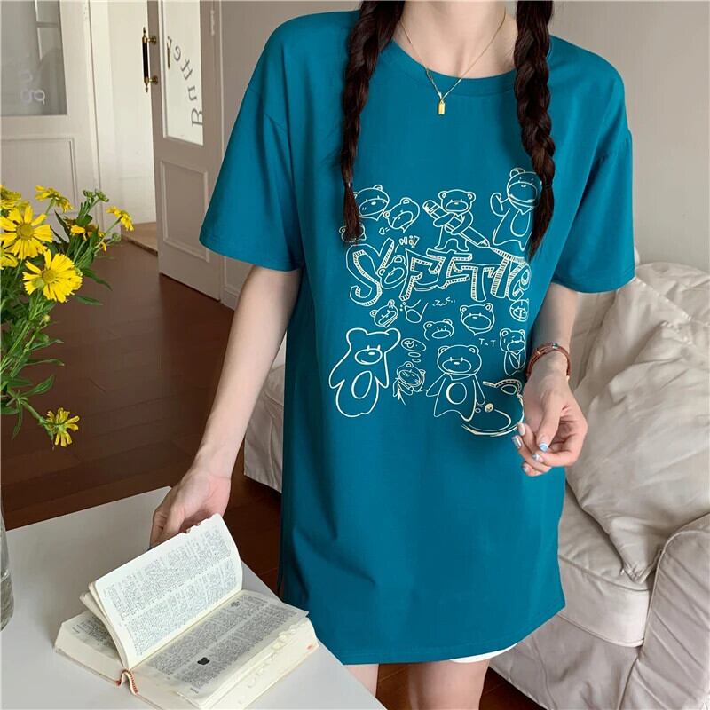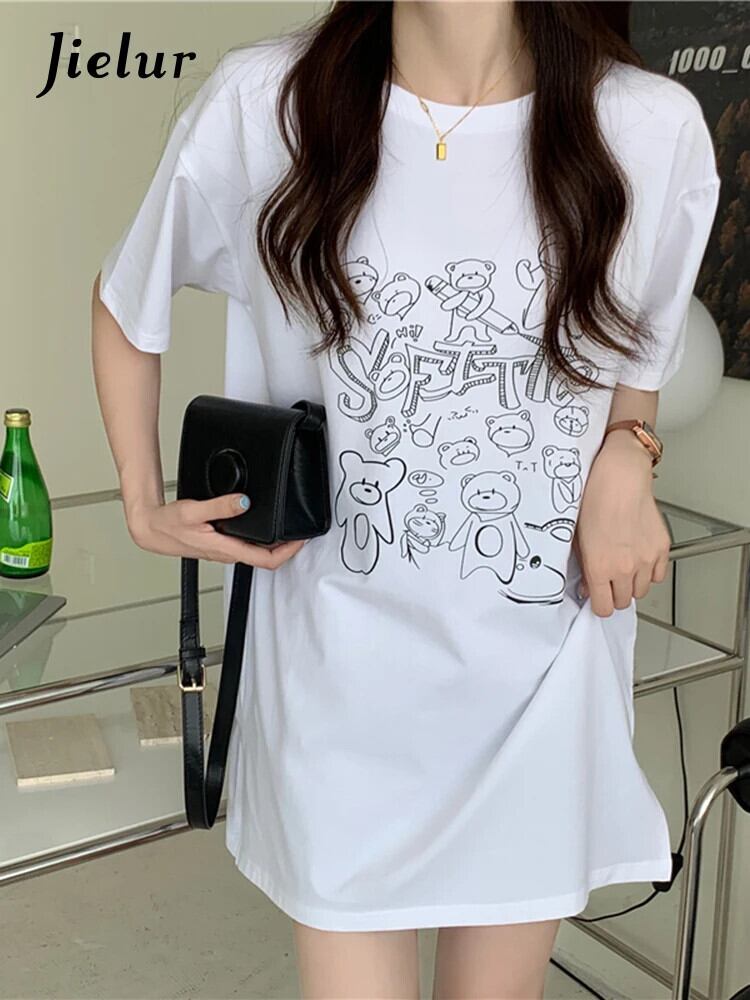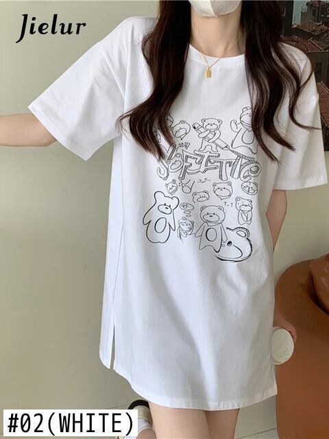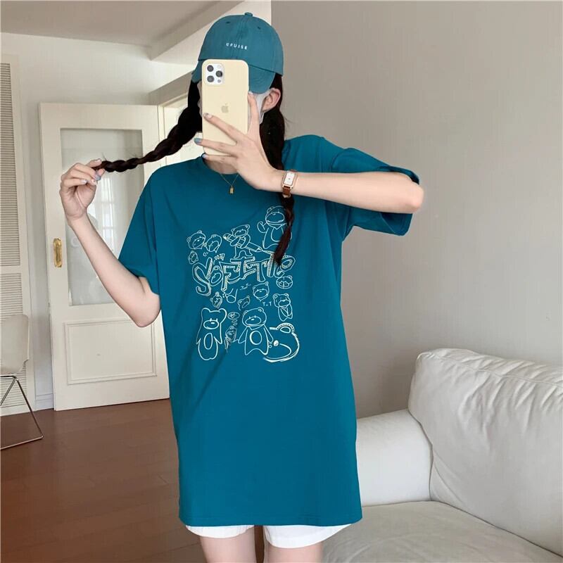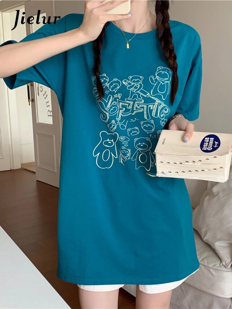 送料無料 Jielur 白オールマッチ半袖女性 Tシャツ 2022 夏かわいい漫画クマブルー Tシャツプリントレタートップ M-XL ショート ホワイト ハーフスリーブ 大人ガーリー スウィート キュート カジュアル サマー 夏物 AE12188787865641683497