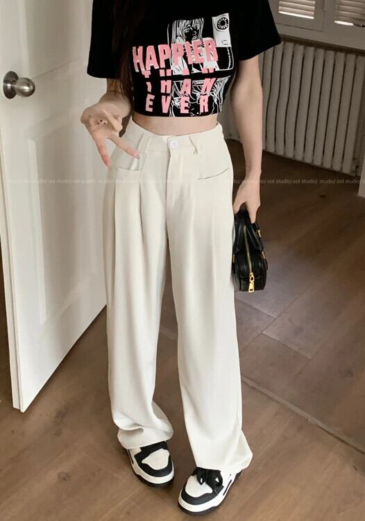 送料無料 Jielur 春ストレート無地ウエストレディースパンツルーズスリムパンツアプリコットブラックピンクパンツ スプリング 春物 ソリッドカラー AE12188787897676041038