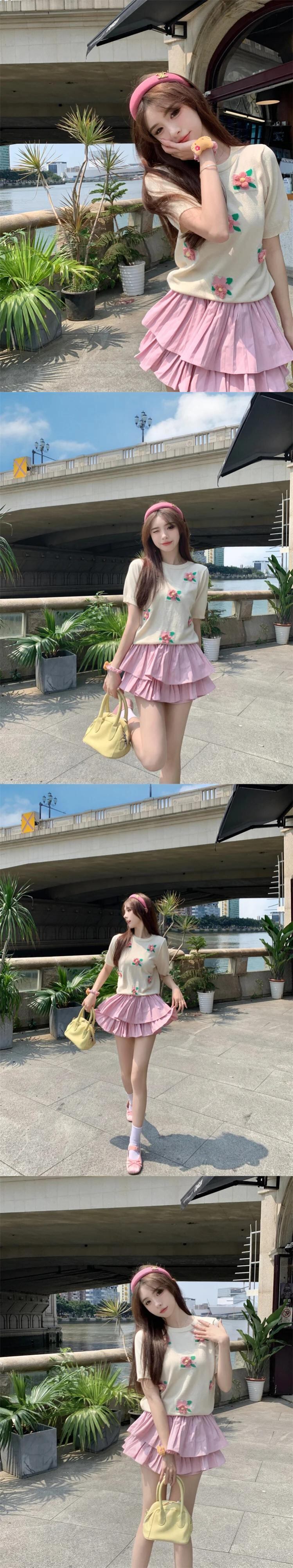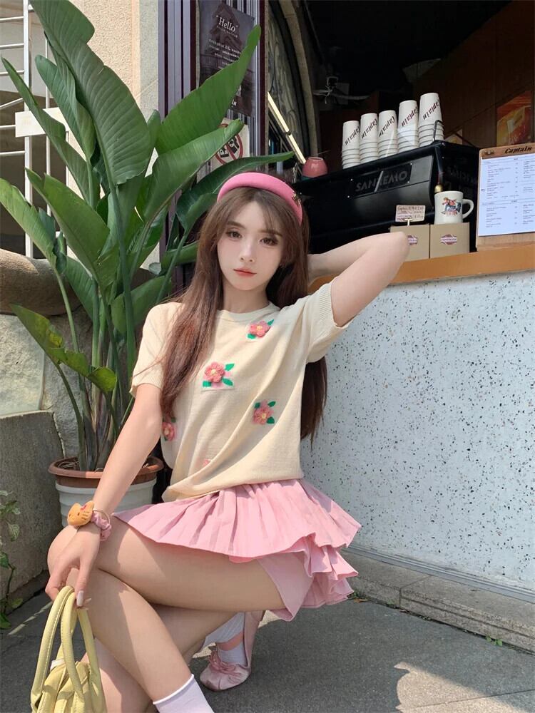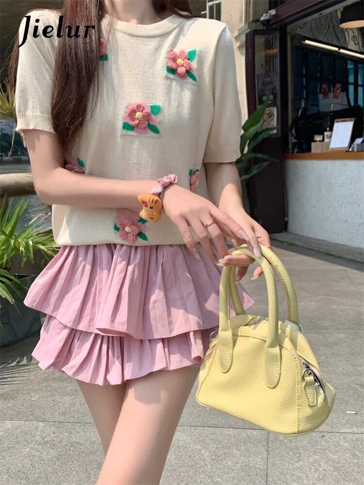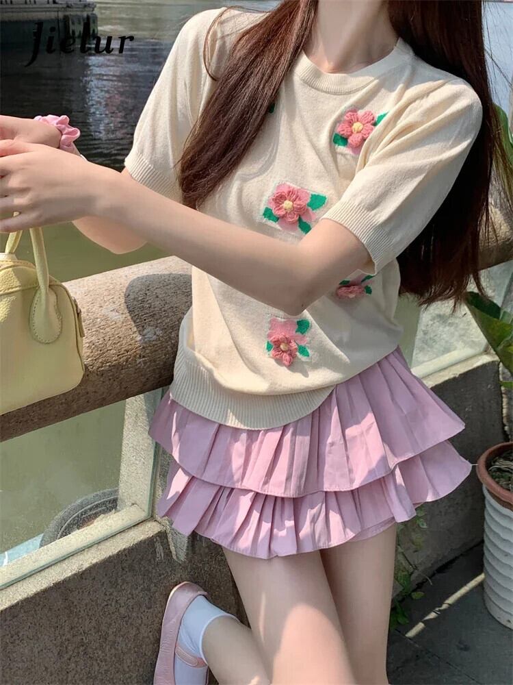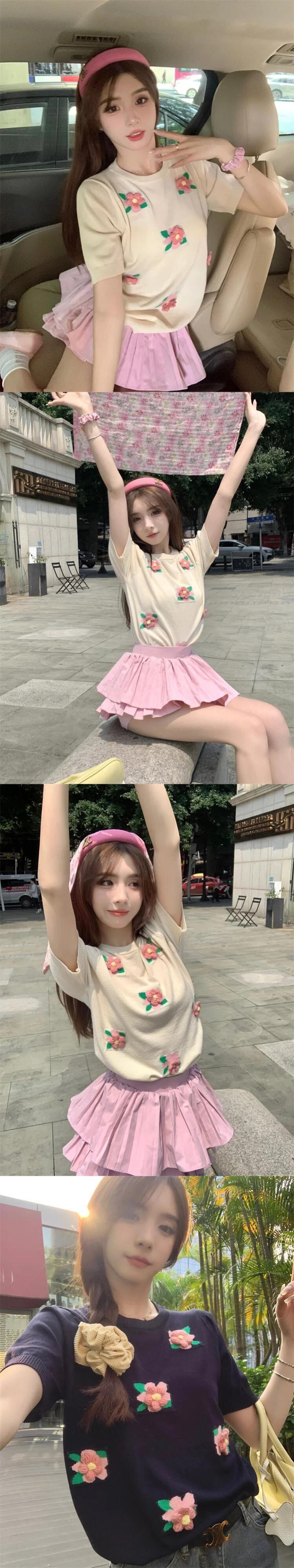 送料無料 Jielur 夏甘いルーズレディース Tシャツ Tシャツ女性アプリコットネイビーラウンドネックトップ 大人ガーリー スウィート キュート カジュアル サマー 夏物 Oネック AE12188787821076322655