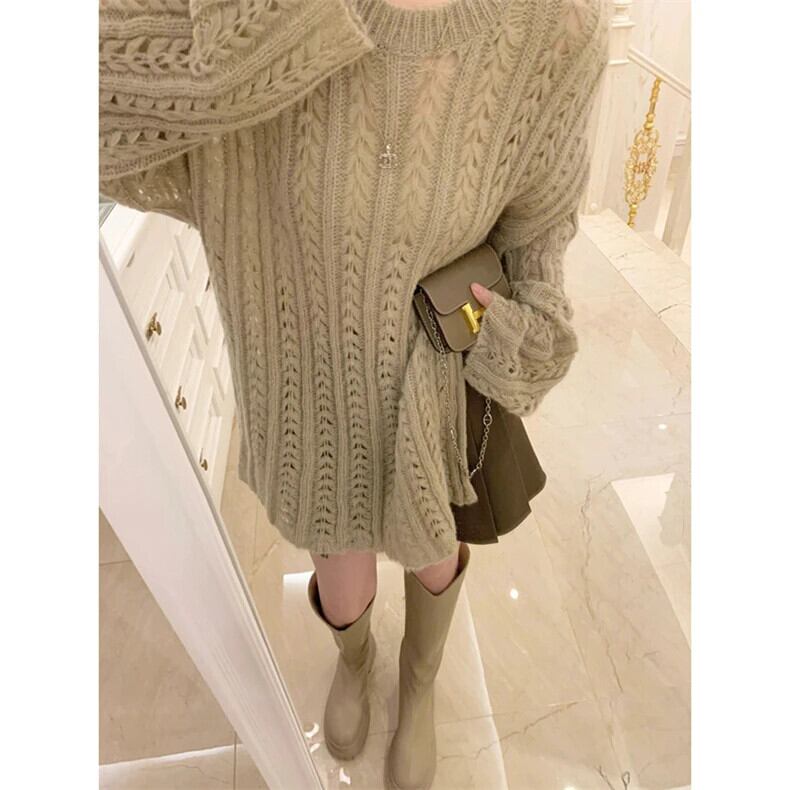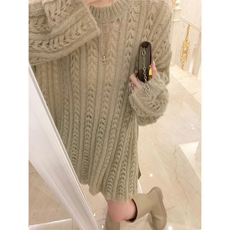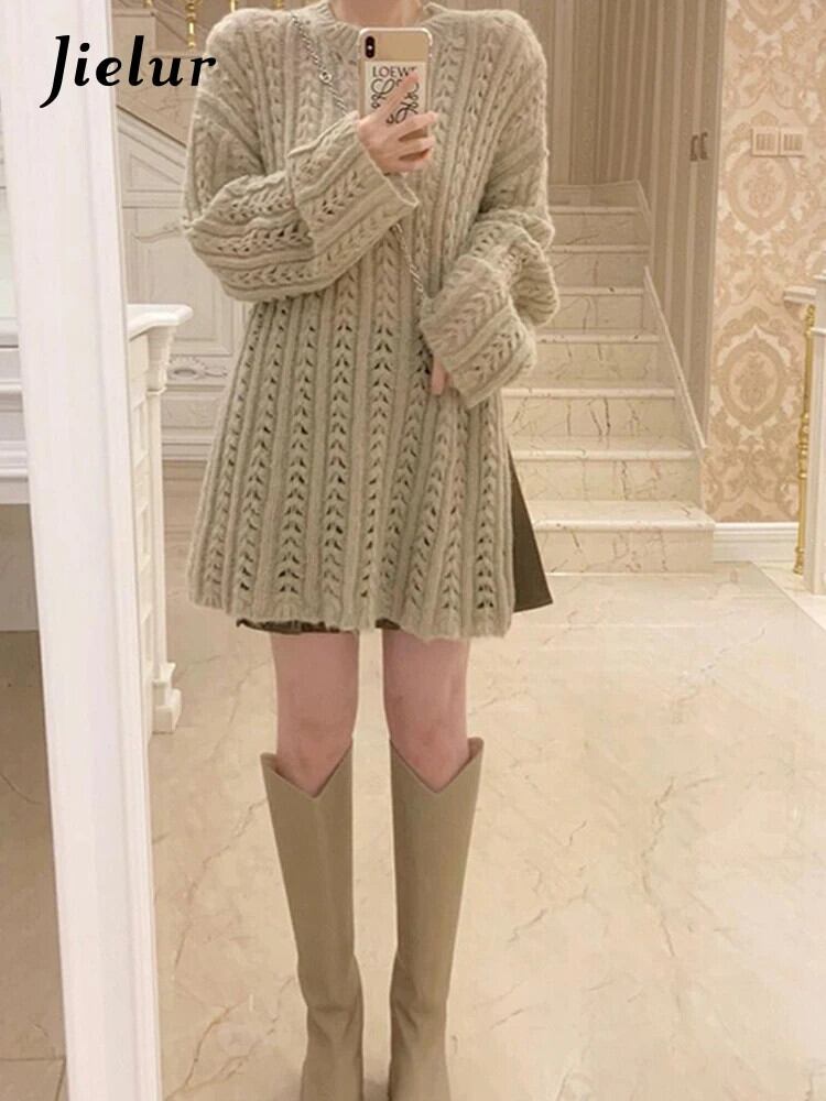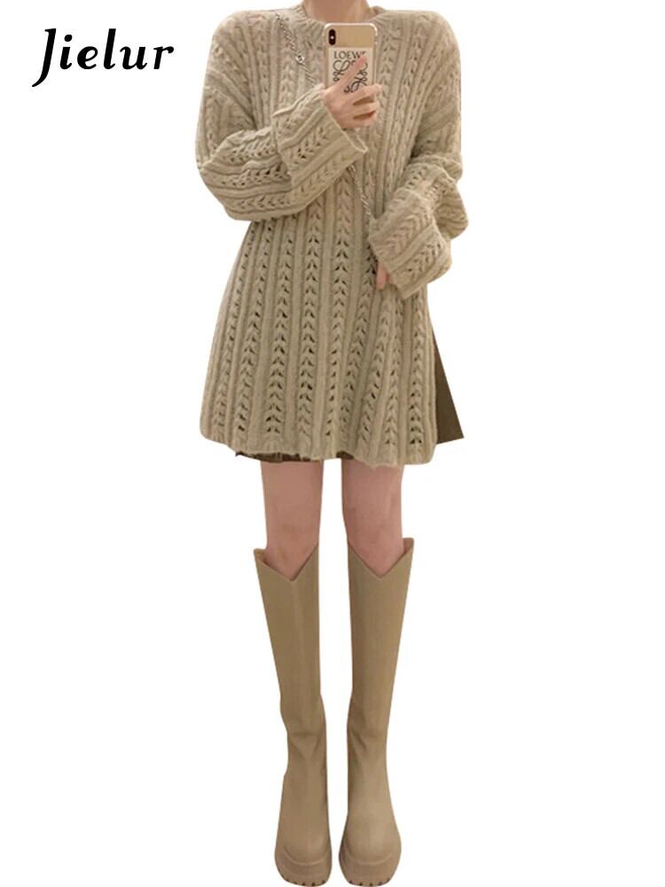 送料無料 Jielur 甘い O ネックセーターニットルーズスプリットドレス冬無地ベーシックシンプルな女性のドレス 大人ガーリー スウィート キュート カジュアル ウィンター 冬物 Oネック ソリッドカラー AE12188787863440158365