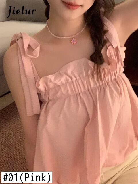 送料無料 Jielur 夏スリム甘い女性のキャミソール固体キャミソール女性アプリコットピンクシックなノースリーブトップ 大人ガーリー スウィート キュート カジュアル サマー 夏物 ソリッドカラー AE12188787880791703871