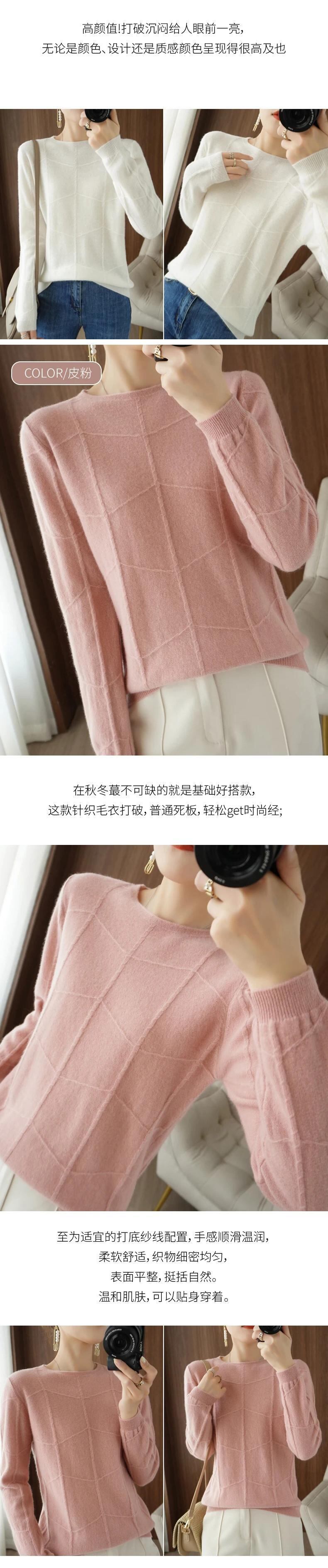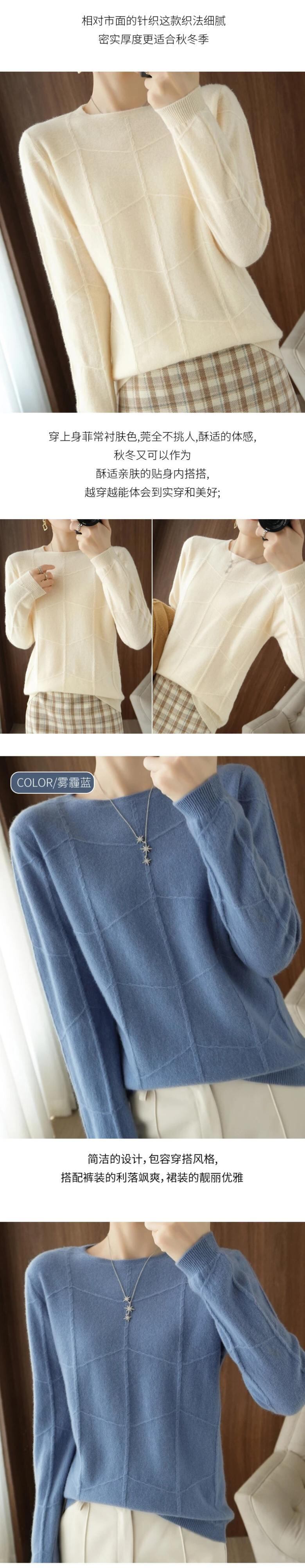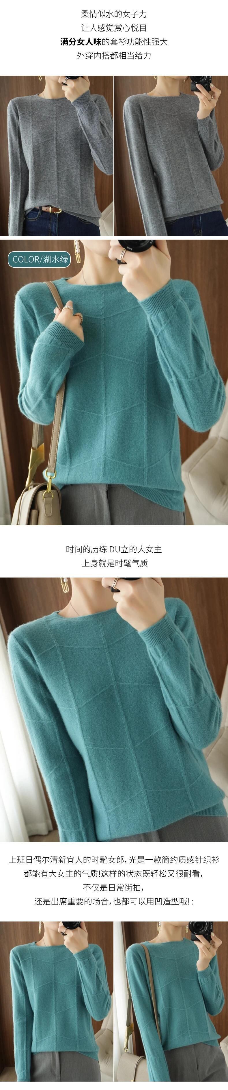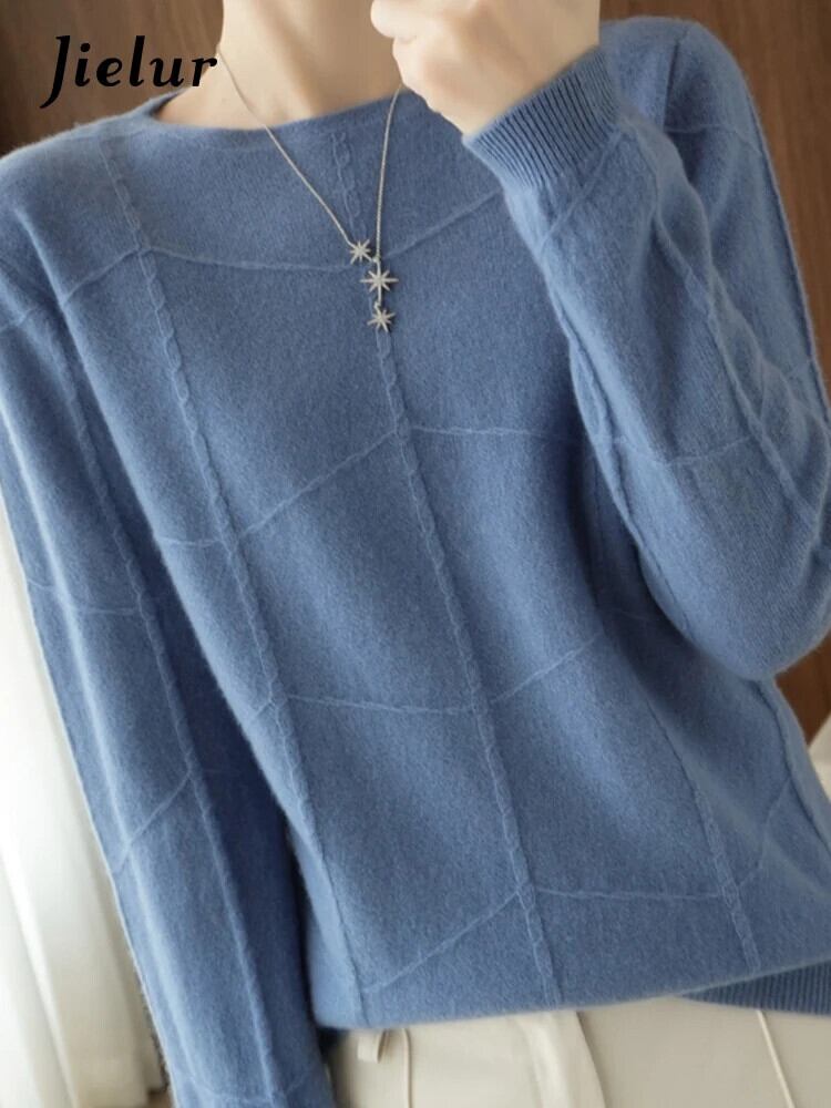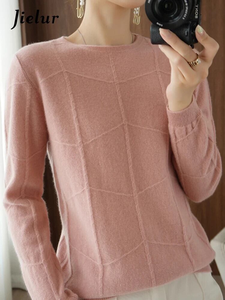 送料無料 Jielur 秋冬 O ネック長袖ニットプルオーバーカシミヤウールチェック柄セータースリムボトム ロング レッド オータム 秋物 ウィンター 冬物 Oネック AE12188787872130165085