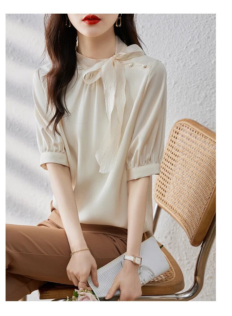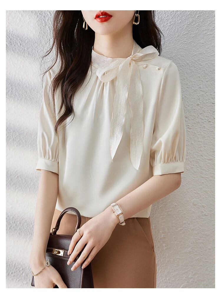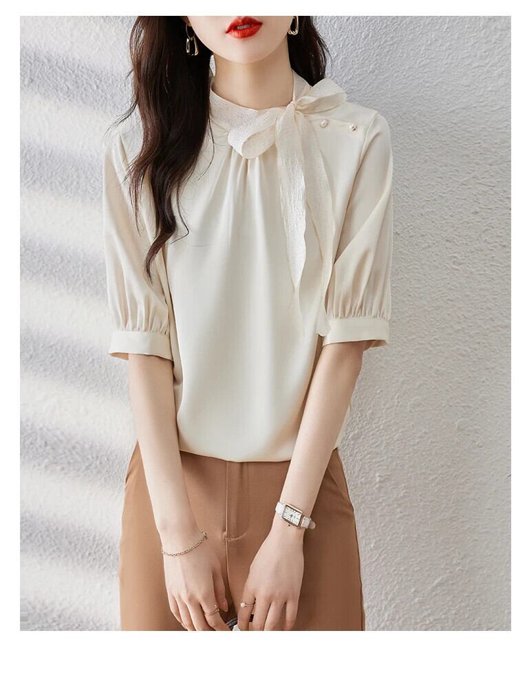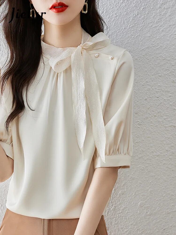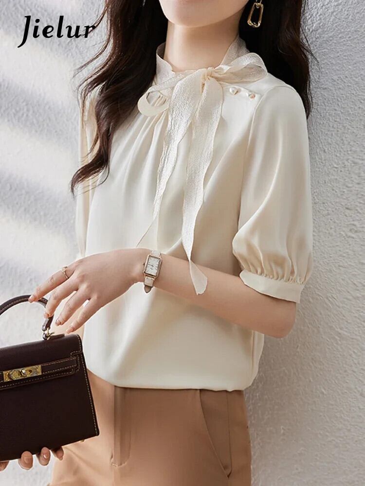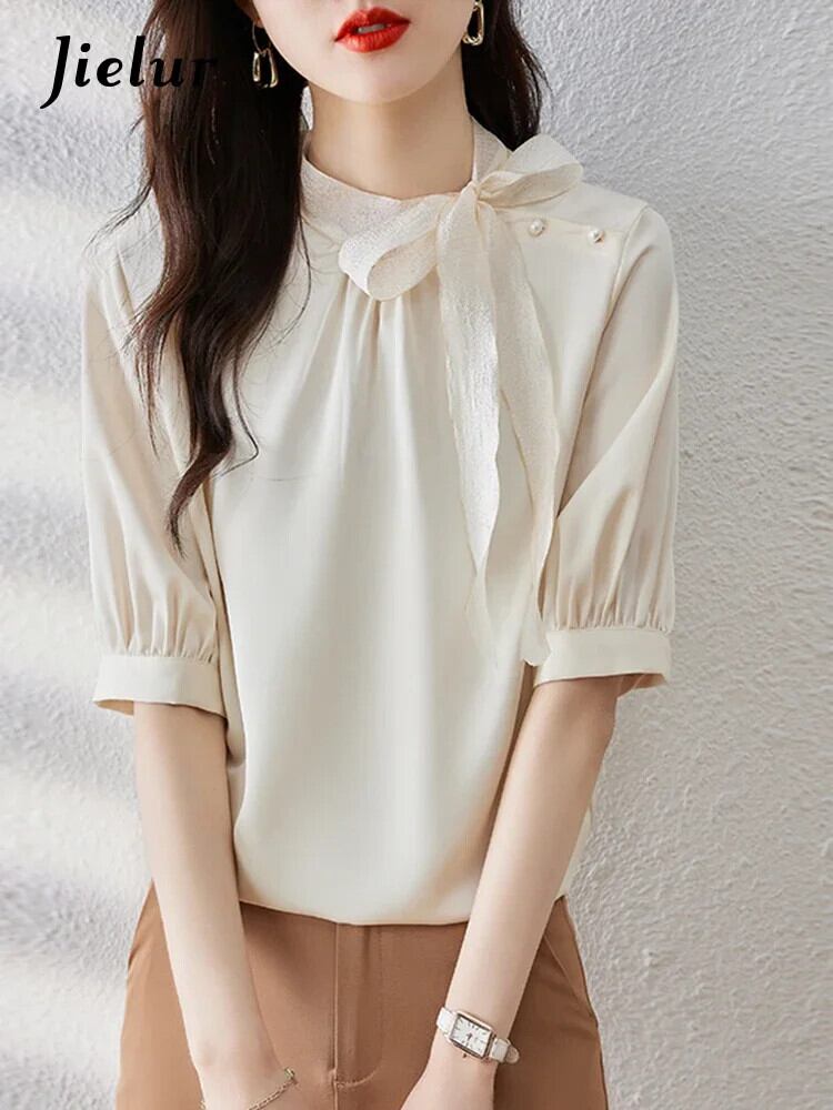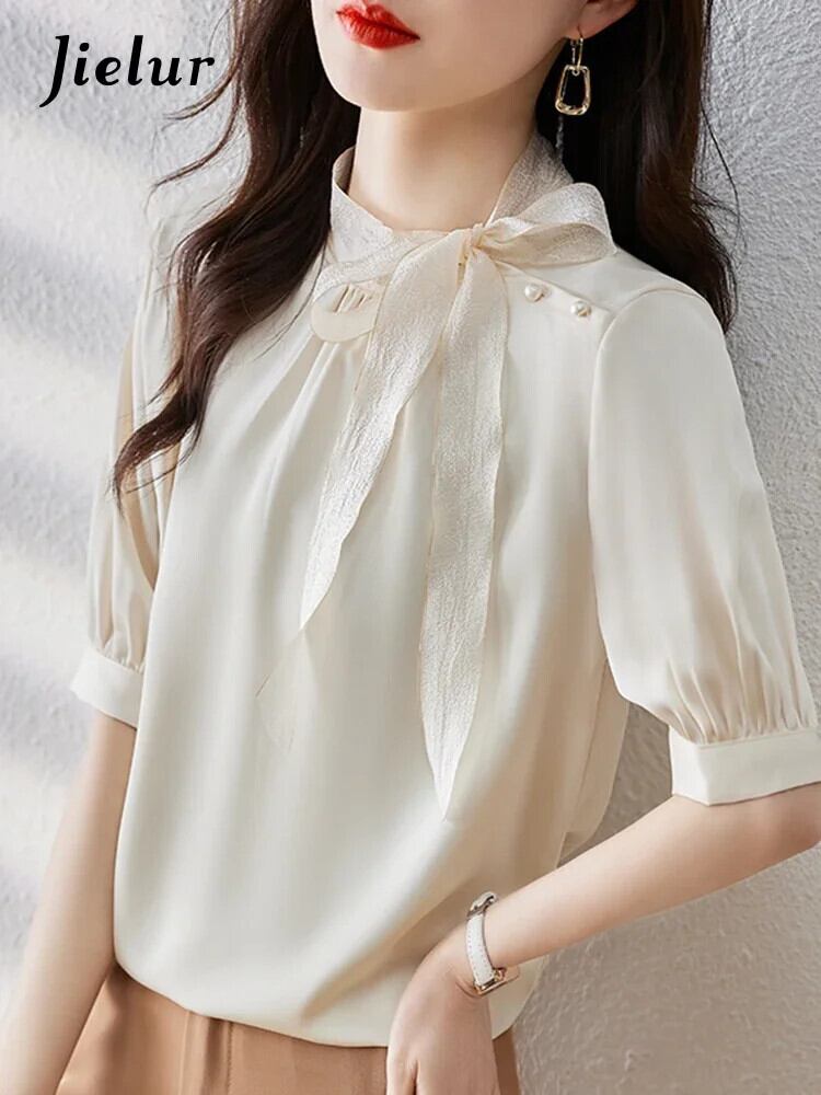 送料無料 Jielur 夏ソリッドカラーの女性ブラウスルーズスイートブラウス女性アプリコットシンプルなトップ 大人ガーリー スウィート キュート カジュアル サマー 夏物 AE12188787823414549894
