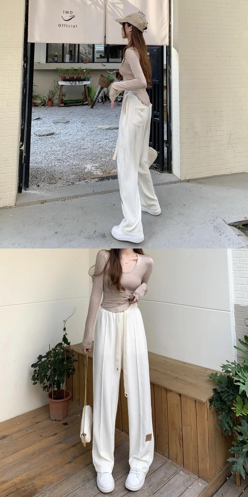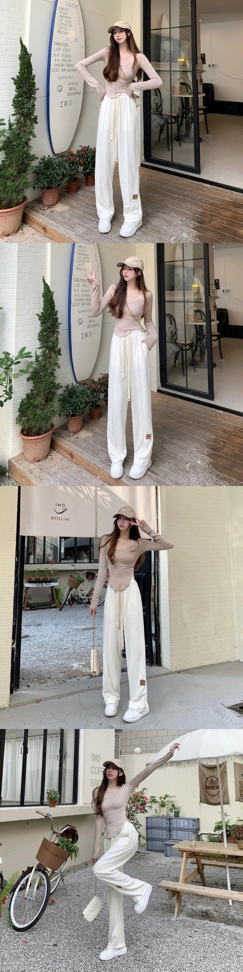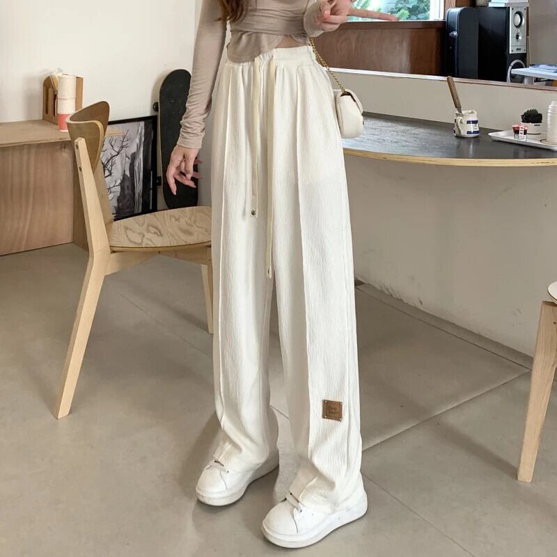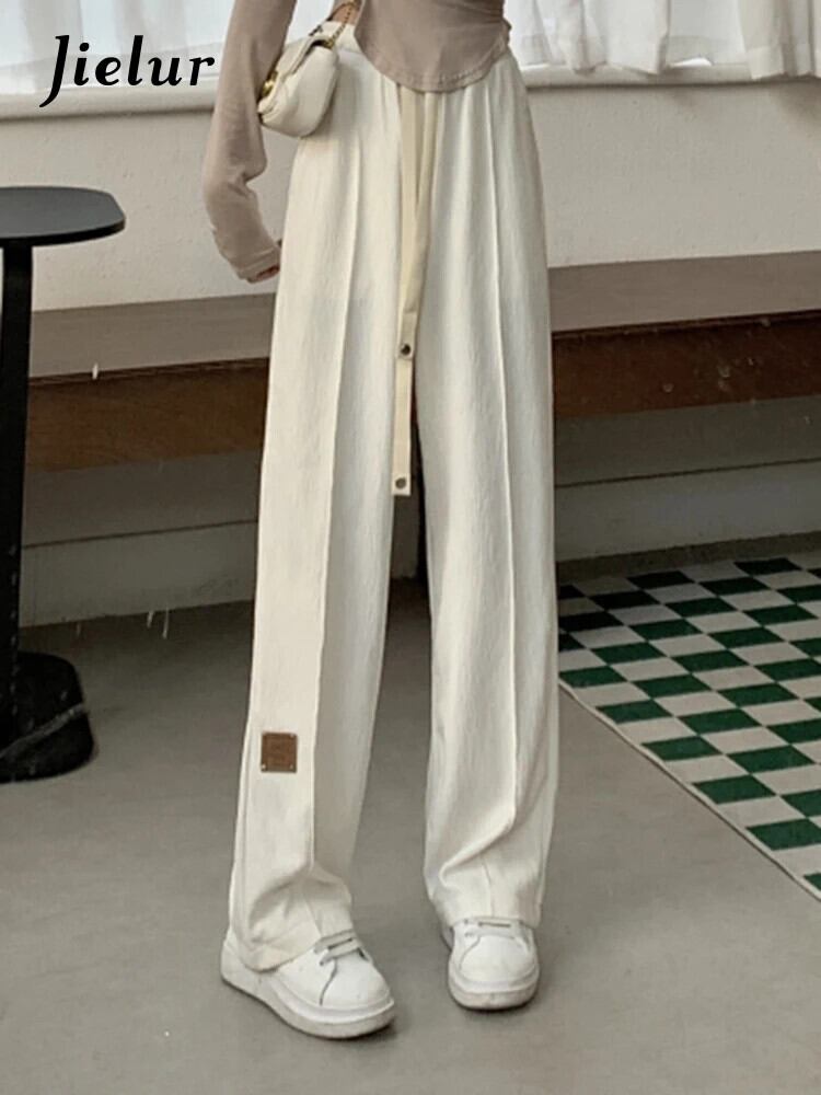送料無料 Jielur Ins シックな巾着ルーズ女性ワイドレッグパンツウエスト無地パンツスウェットパンツ ワイドパンツ ソリッドカラー AE1218878785248125172