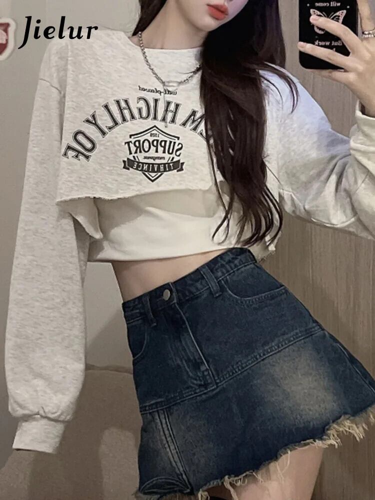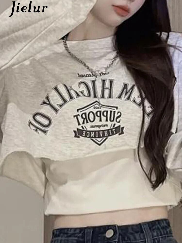 送料無料 Jielur ツーピースインシックリーレタープリントパーカー O ネック秋ルーズ女性パーカー女性トップ オータム 秋物 Oネック AE12188787813106008945
