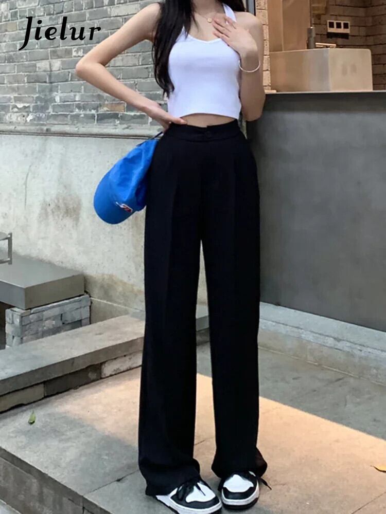 送料無料 Jielur ウエストスリムストレートレディースパンツ無地ベーシックパンツ女性グリーンブラックシンプルパンツ ソリッドカラー AE1218878787102029460