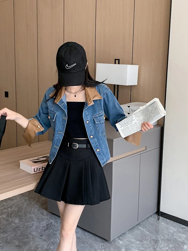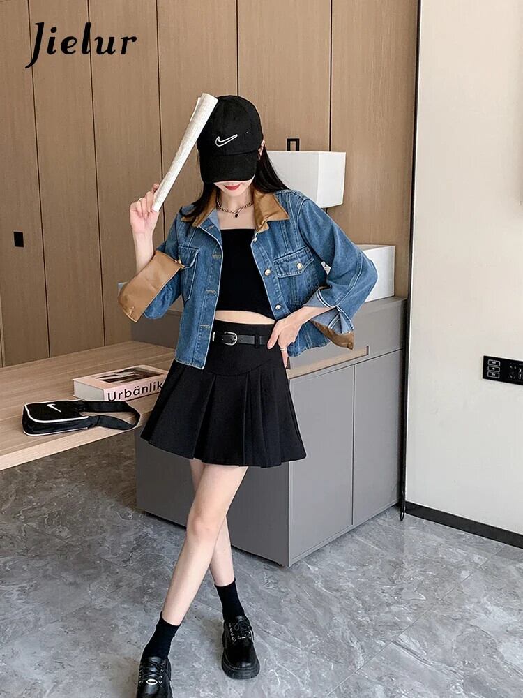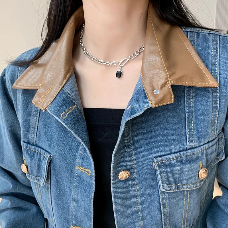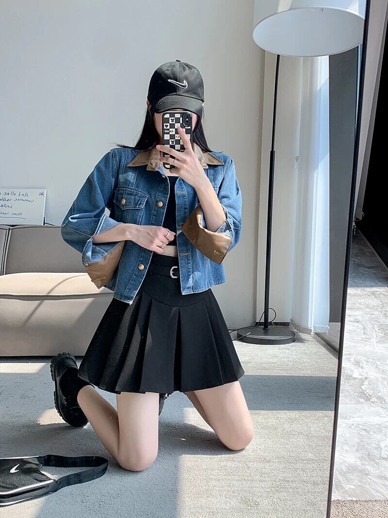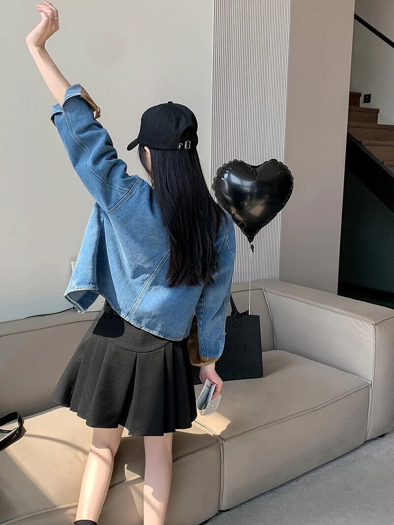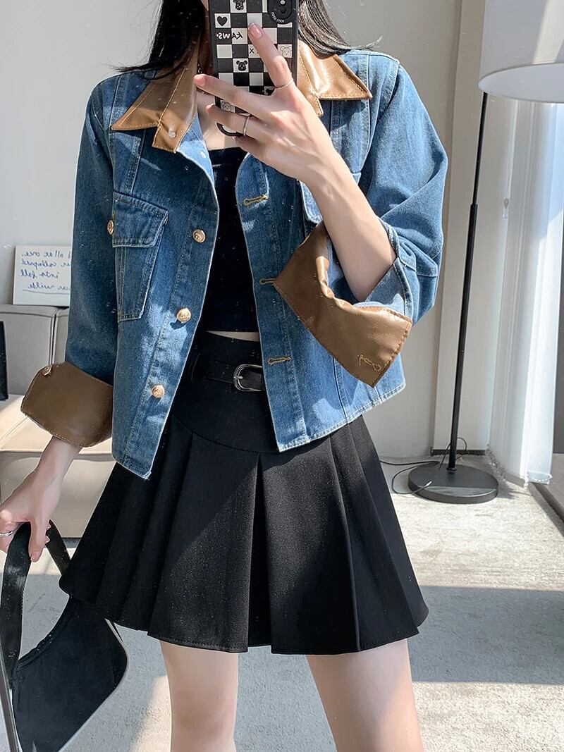 送料無料 Jielur 夏ヴィンテージデニム女性シャツコントラストカラールーズシャツ女性ブルーストリート長袖トップ ロング サマー 夏物 ビンテージ AE12188787855994030118