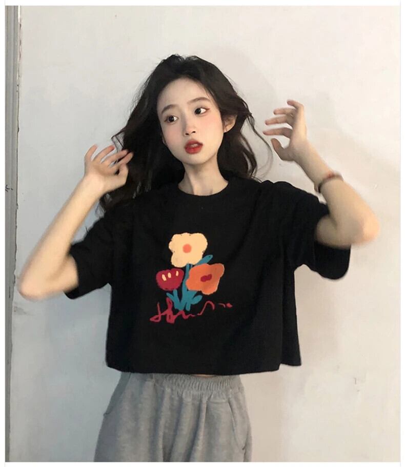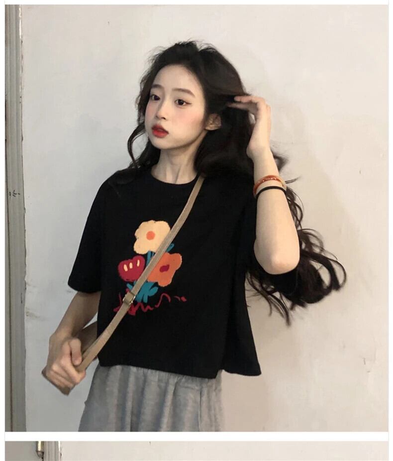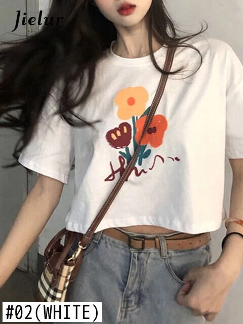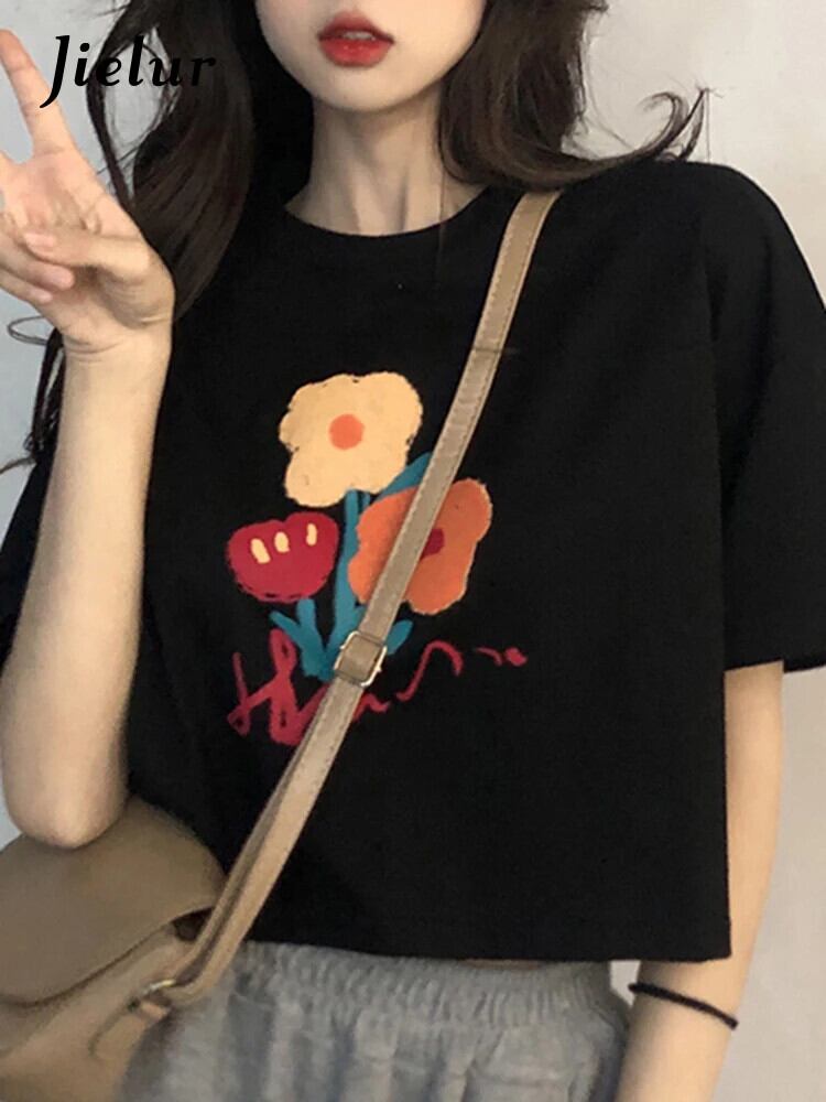 送料無料 Jielur 夏ルーズプリント半袖 Tシャツレジャー黒 O ネックショート Tシャツ女性ホワイトレディトップ Tシャツ ブラック サマー 夏物 Oネック AE12188787883084653285