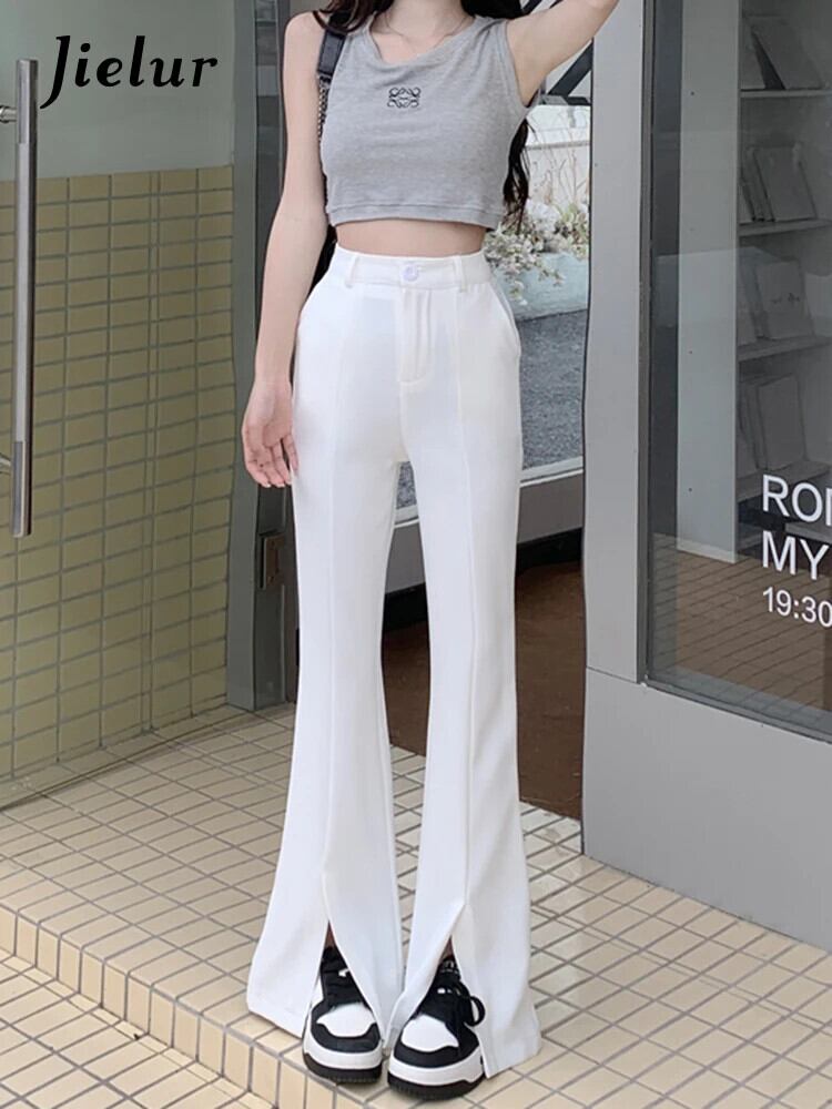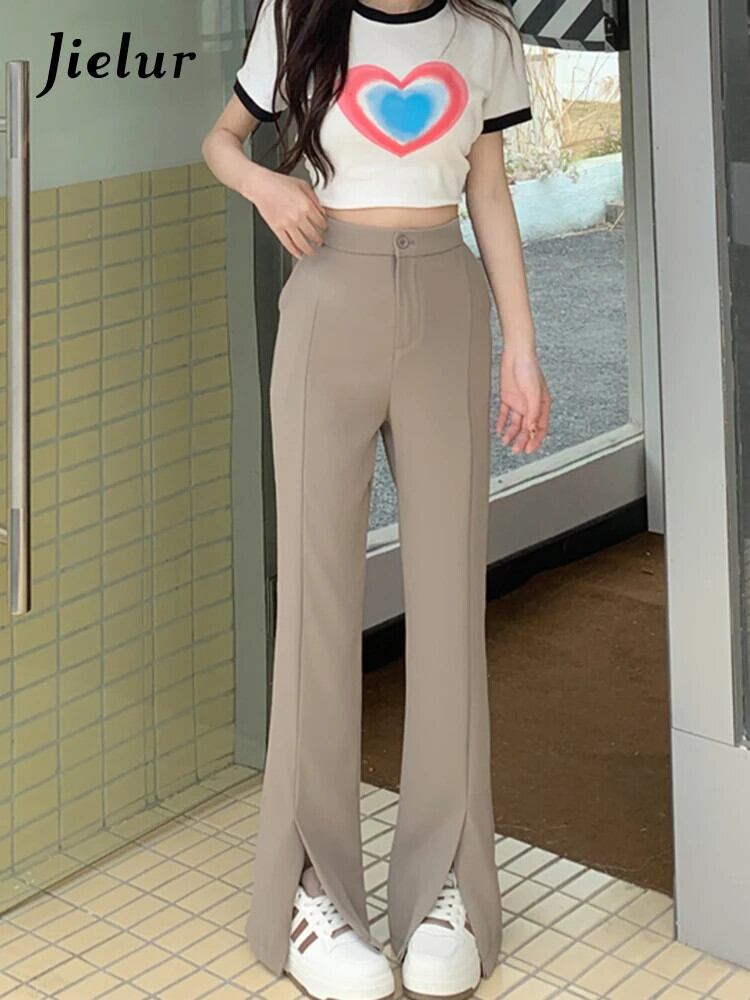 送料無料 Jielur ウエストスリムストレートレディースパンツ春無地パンツブラックホワイトカーキパンツ女性 スプリング 春物 ソリッドカラー AE12188787847946896260