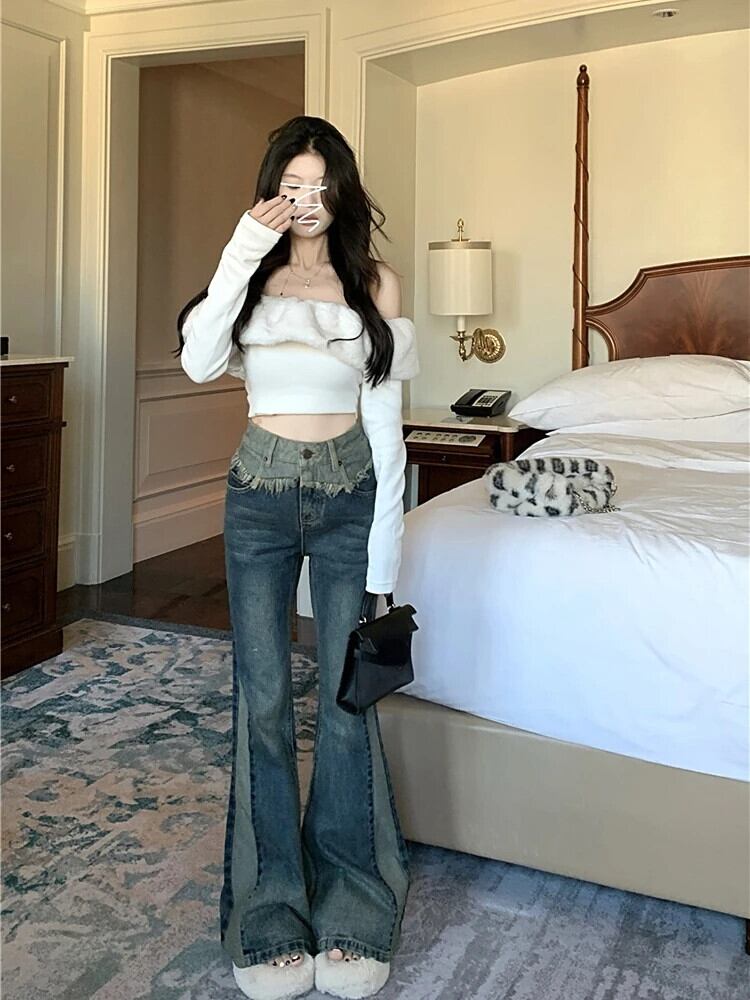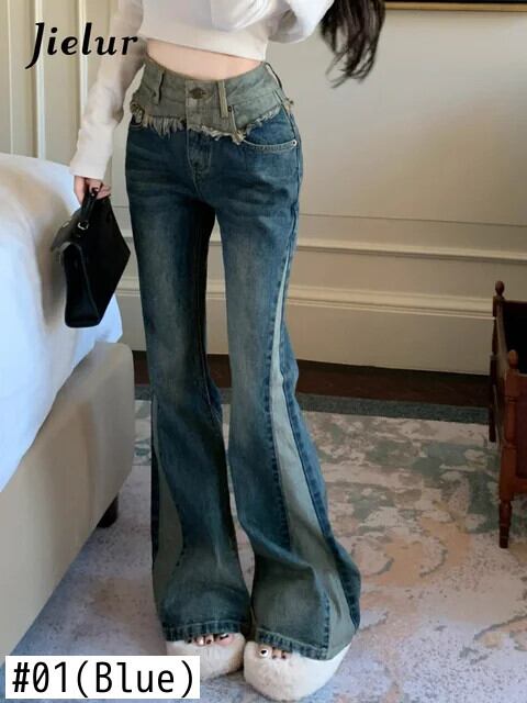 送料無料 Jielur ヴィンテージ Y2k だぶだぶのパンツストリートフレアデニムズボン女性ウエストストレートジーンズ春 レッド スプリング 春物 ビンテージ AE12188787813874370654