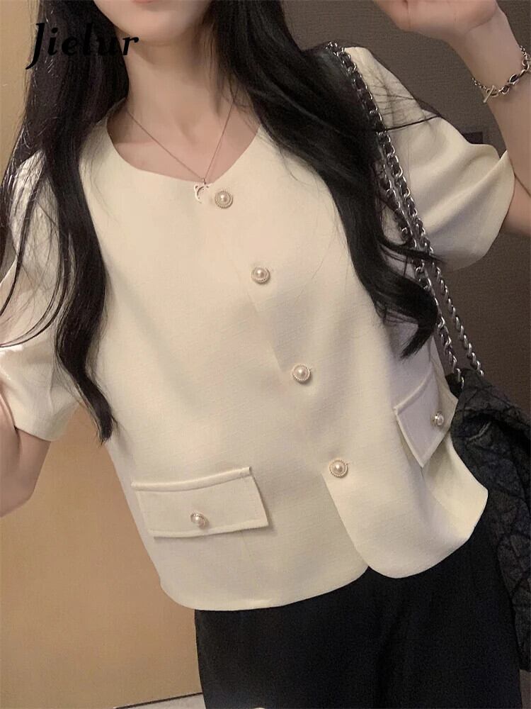 送料無料 Jielur 夏無地スリム女性シャツルーズスウィートシャツ女性黒アプリコットトップ ブラック 大人ガーリー キュート カジュアル サマー 夏物 ソリッドカラー AE12188787851928813243