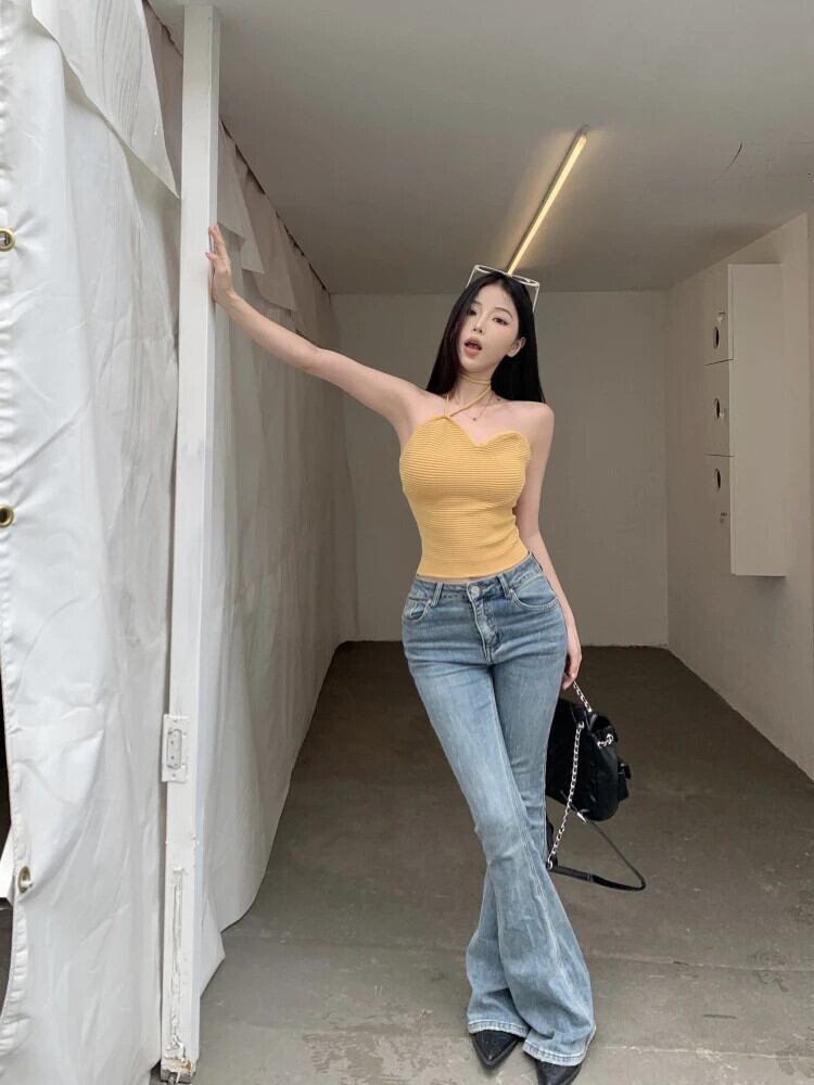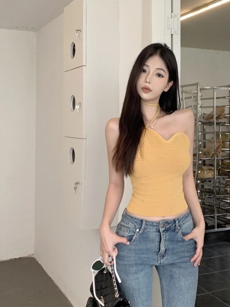 送料無料 Jielur 夏無地スリム女性のキャミソールホルターセクシーな甘いキャミソール女性イエローシンプルなベーシックニットノースリーブトップ 大人ガーリー スウィート キュート カジュアル サマー 夏物 ソリッドカラー AE12188787836894263489