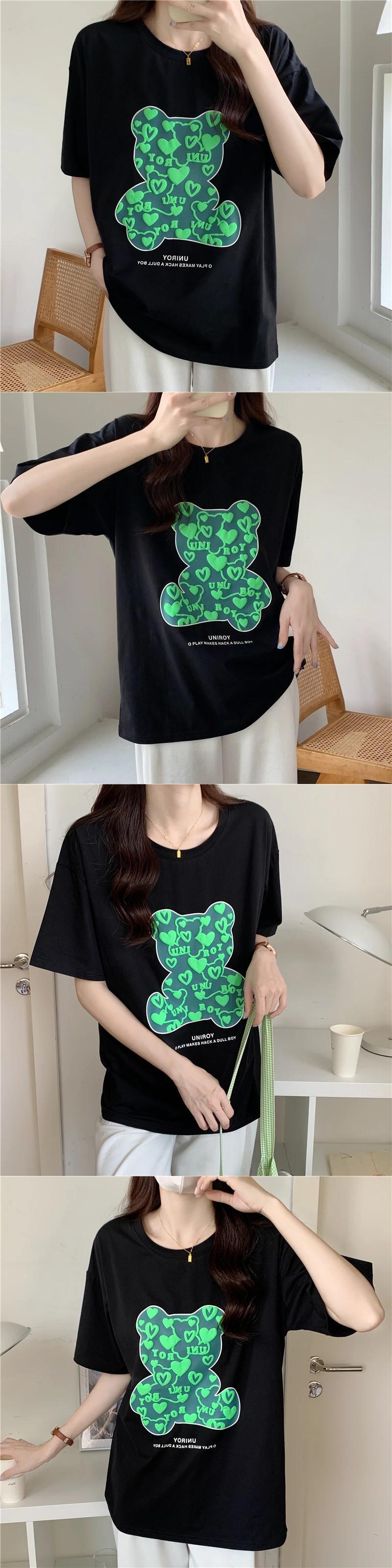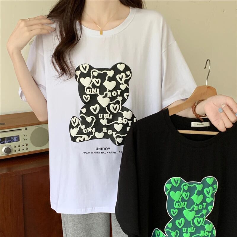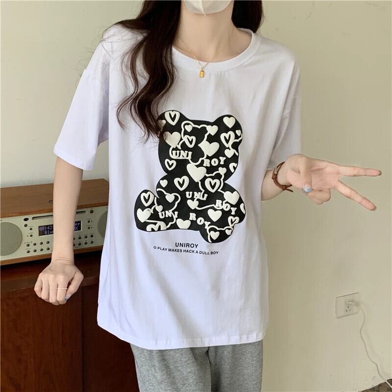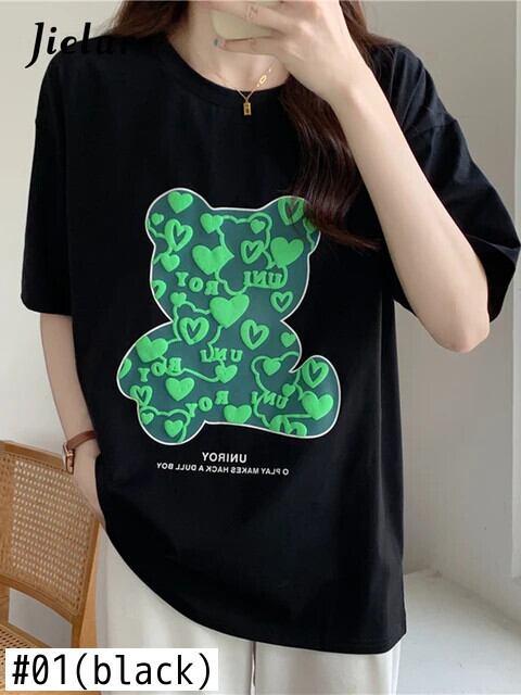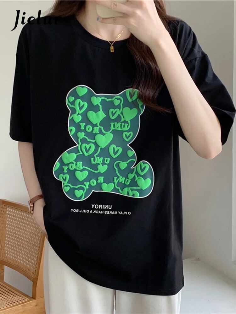 送料無料 Jielur 2022 夏緩い漫画プリント半袖 Tシャツ黒原宿 Tシャツ白人女性トップス M-XL ホワイト ブラック かわいい サマー 夏物 AE12188787849902060391