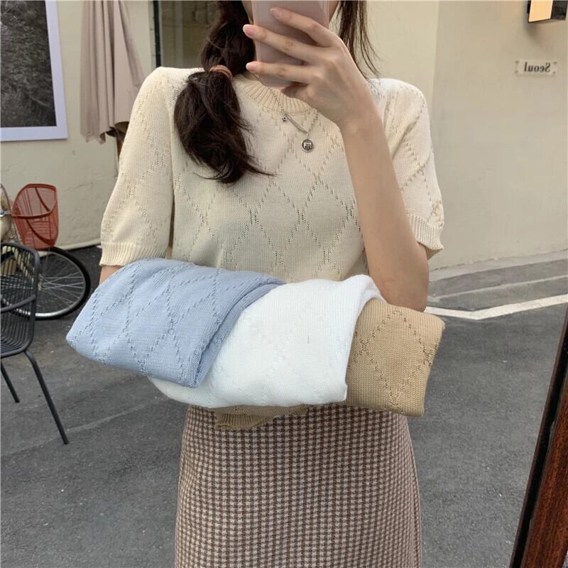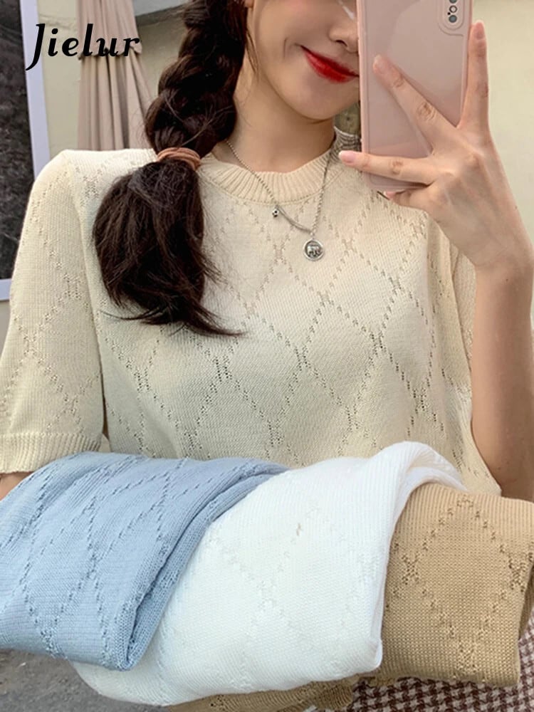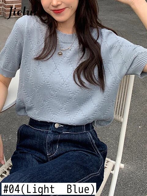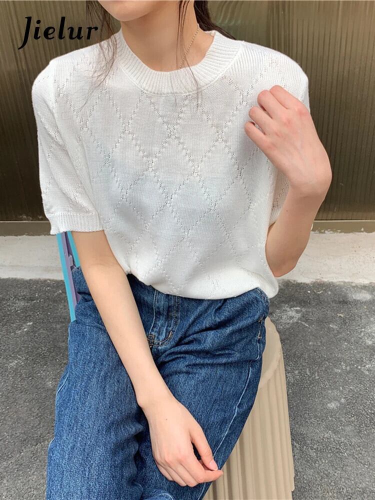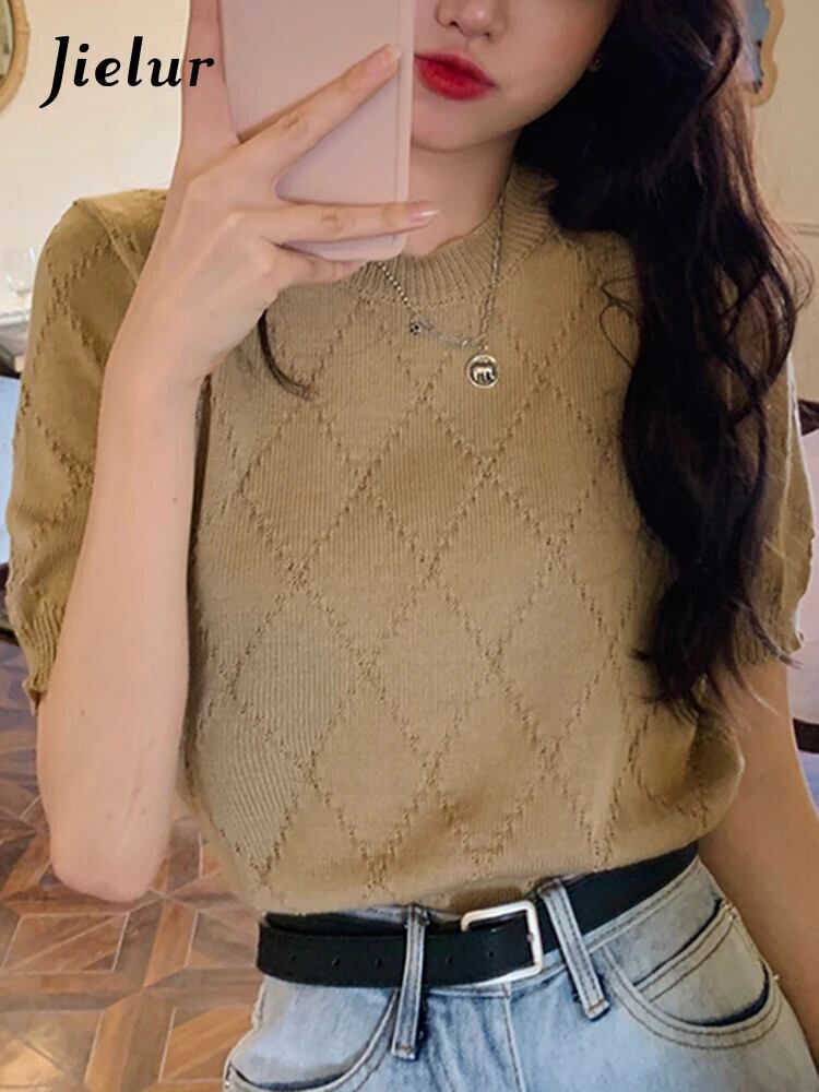 送料無料 Jielur ソリッドカラーの女性の Tシャツコットン O ネックベーシックホワイトカーキ Tシャツ半袖ニットトップ 2022 ショート ハーフスリーブ Oネック AE12188787893818996918