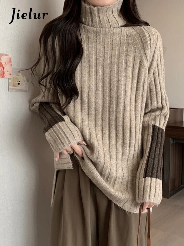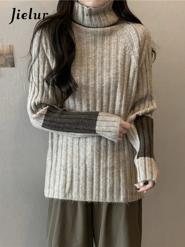 送料無料 Jielur 秋冬シンプルベーシックプルオーバー女性ソリッドカラースリムシックプルオーバーブラックグレールーズトップ オータム 秋物 ウィンター 冬物 AE12188787823006771359