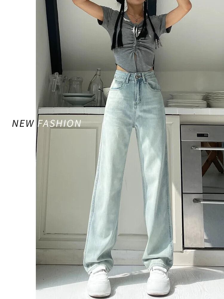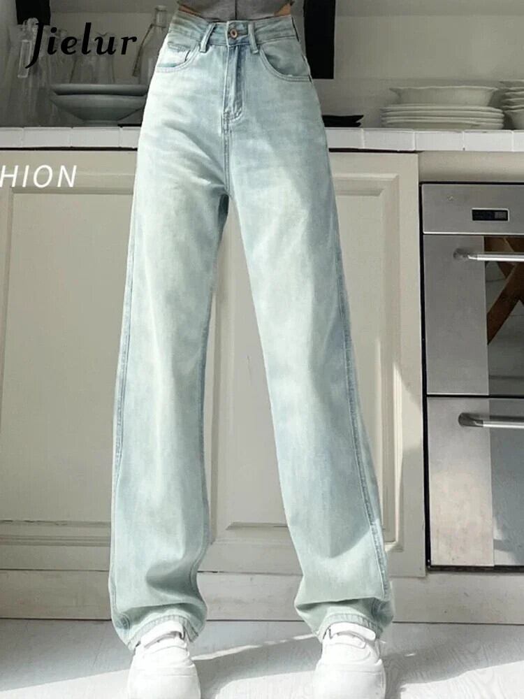 送料無料 Jielur 秋ウエストベーシックストレート女性ジーンズスリムストリートシックジーンズ女性ブルーシンプルなジーンズ オータム 秋物 AE12188787872770184865