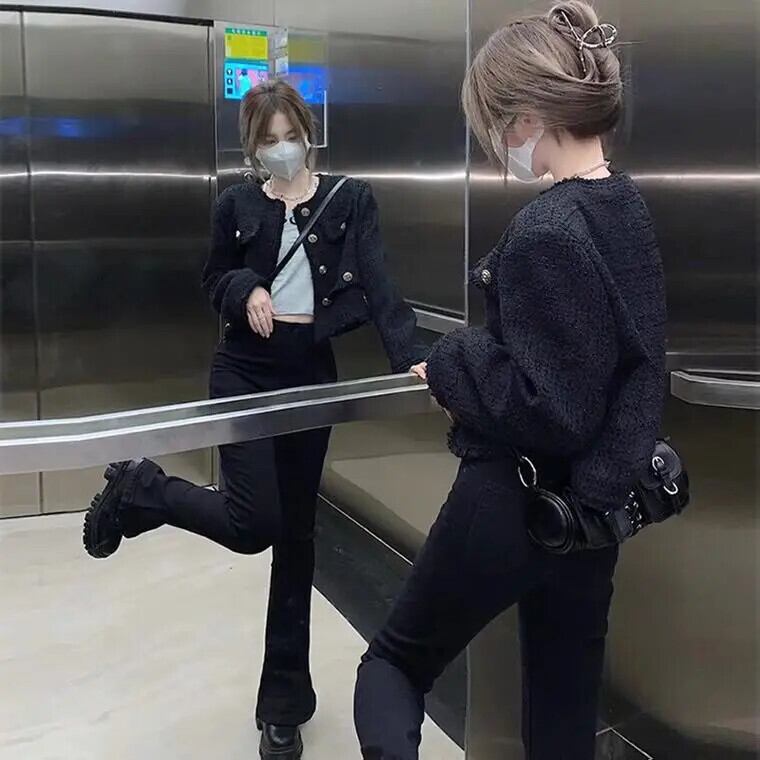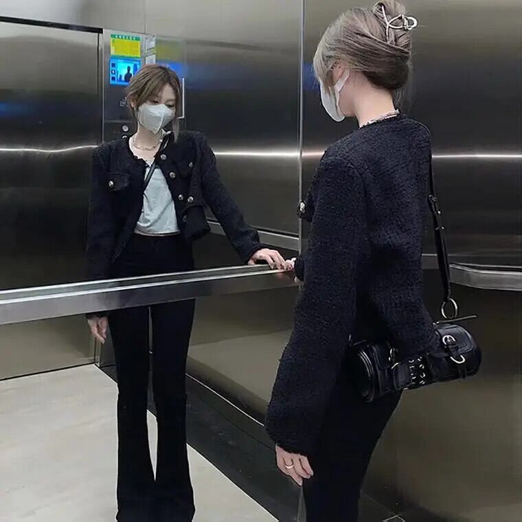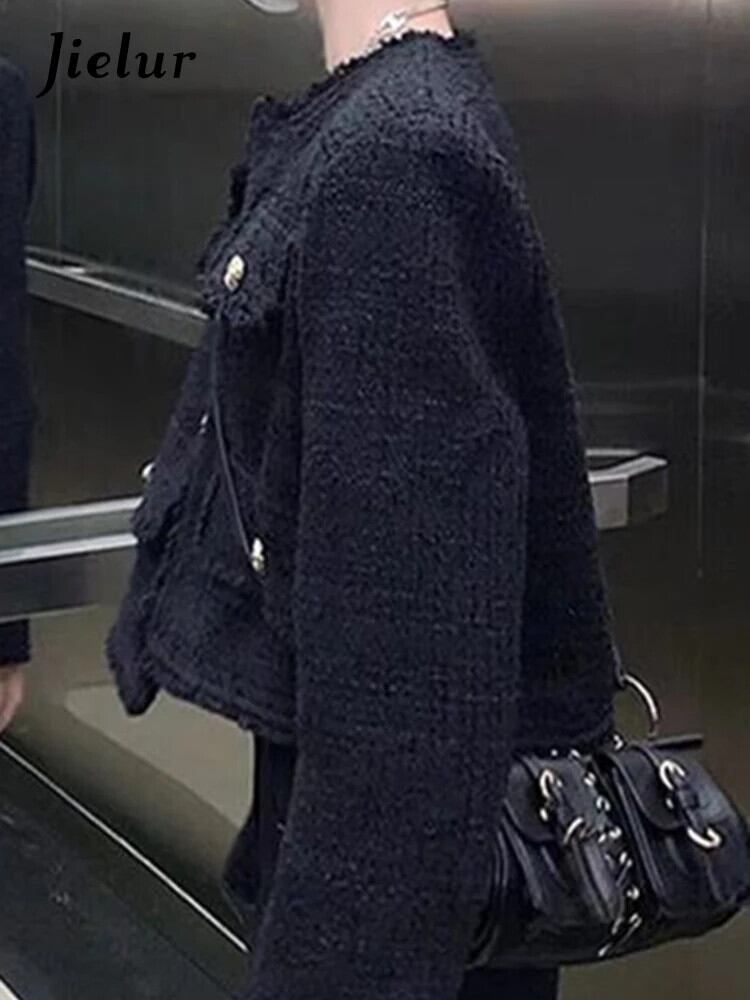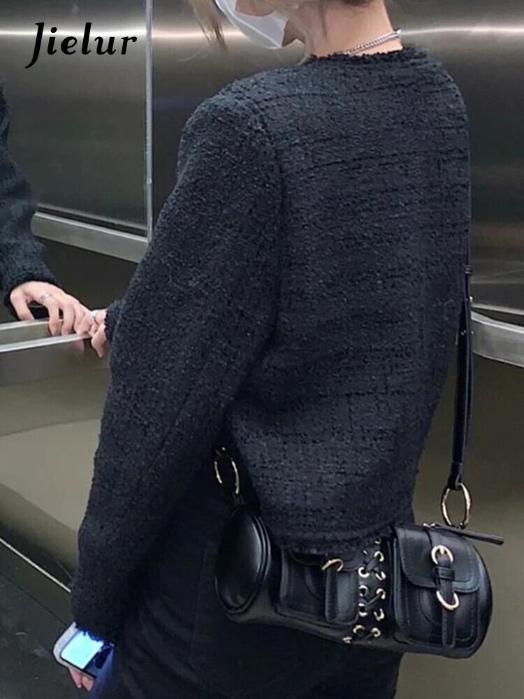 送料無料 Jielur 黒フレンチ V ネック無地カーディガンシンプルシックなボタンジッパーシングルブレスト女性カーディガン ブラック Vネック ソリッドカラー AE12188787852816394630