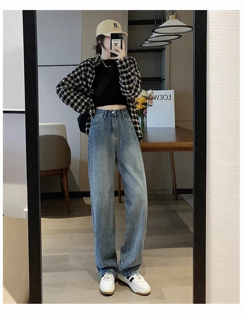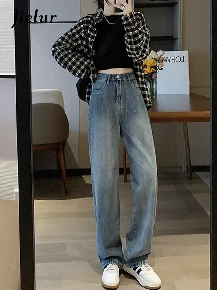 送料無料 Jielur 夏ストリートスリム女性のジーンズレトロアメリカンルーズストレートジーンズ女性のウエストシンプルなベーシックシックなジーンズ サマー 夏物 AE12188787899650791973
