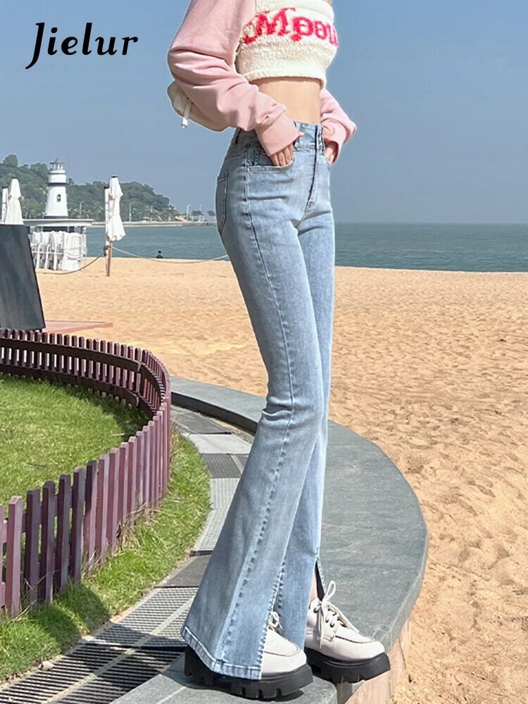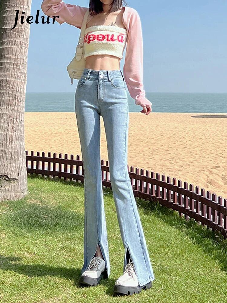 送料無料 Jielur 秋ウエストスリムインジーンズ女性シンプルベーシックストリートシックジーンズベビーブルーパンツ女性 オータム 秋物 AE12188787879025538692