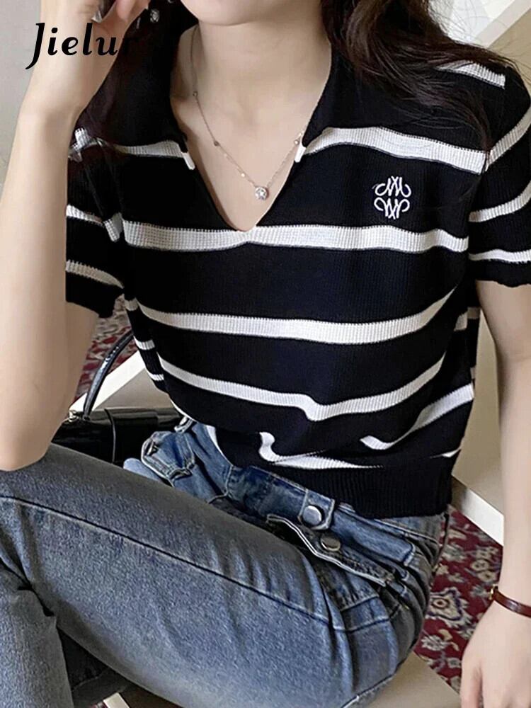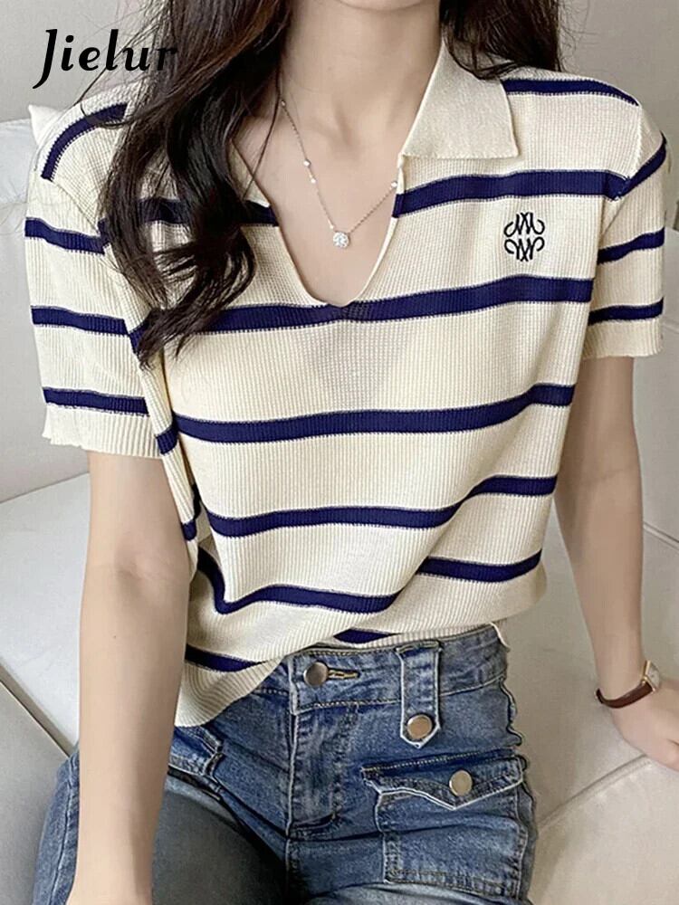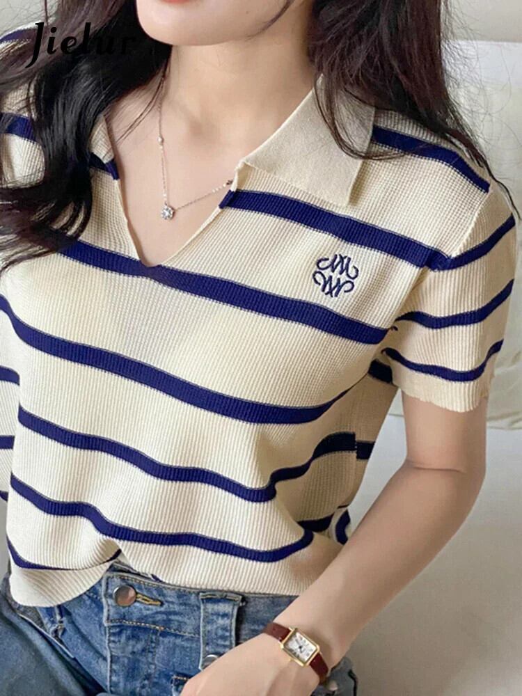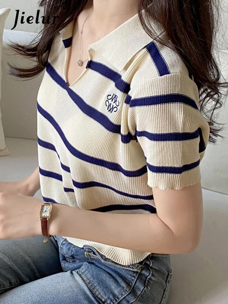 送料無料 Jielur 夏サイドストライプの女性の Tシャツスリムルーズシンプルなベーシック Tシャツ女性黒赤青カーキトップ レッド ブルー ブラック サマー 夏物 AE12188787859504088711