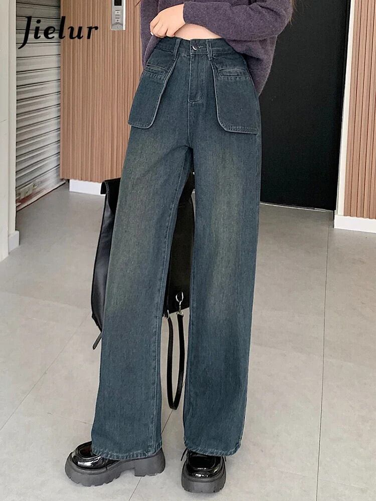 送料無料 Jielur ウエストスリム女性ジーンズ秋ヴィンテージ女性ジーンズインブルーストリートシックなワイドレッグパンツ オータム 秋物 ワイドパンツ ビンテージ AE12188787894346210268