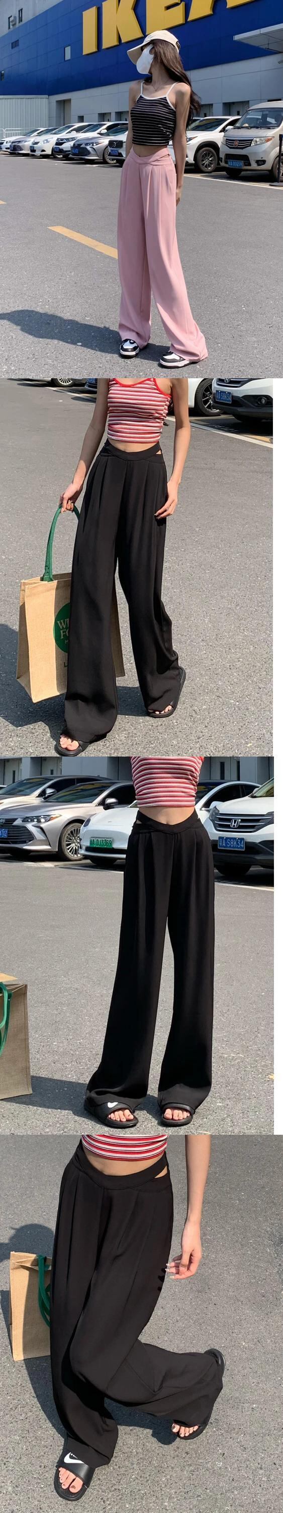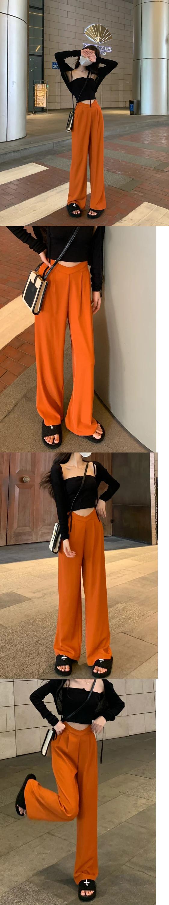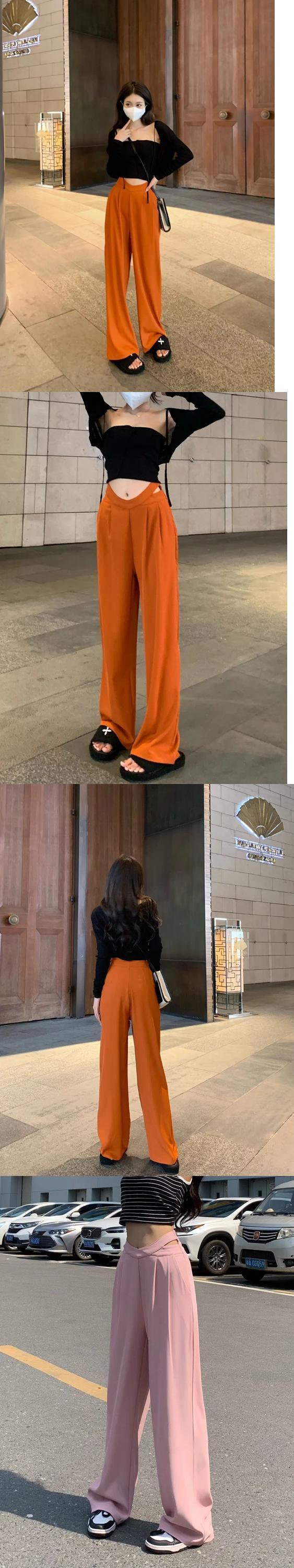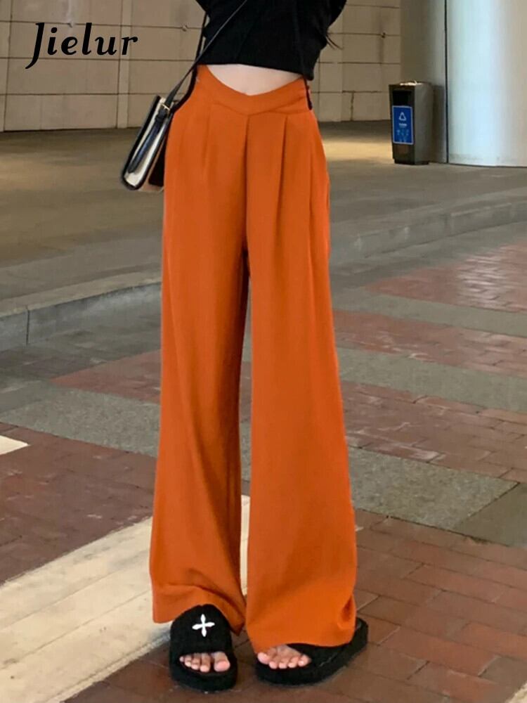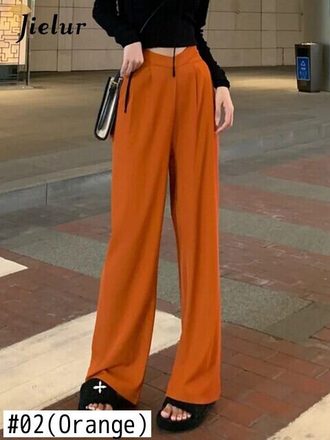 送料無料 Jielur ホローアウトウエストワイドレッグスーツパンツストレートルーズレディースパンツブラックピンクオレンジズボン S-L ワイドパンツ AE12188787879046779219