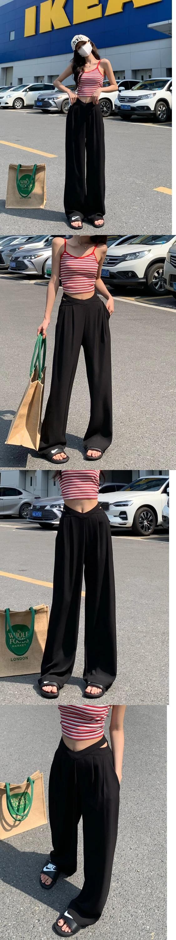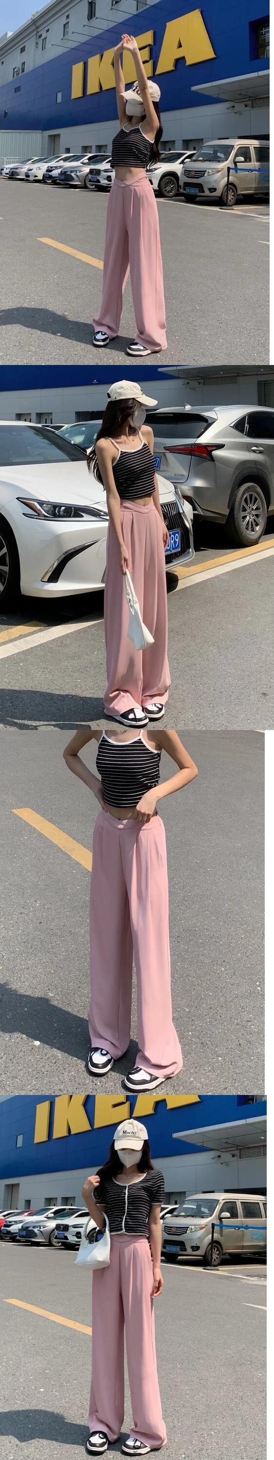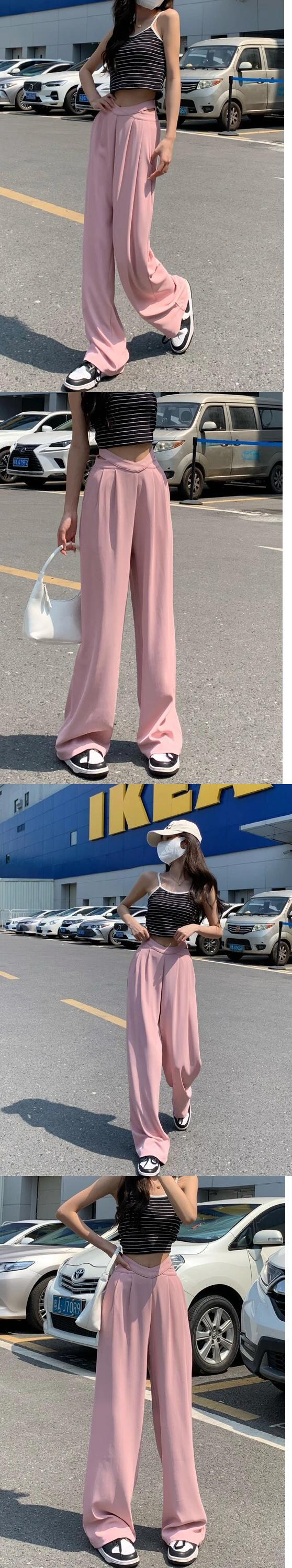 送料無料 Jielur ホローアウトウエストワイドレッグスーツパンツストレートルーズレディースパンツブラックピンクオレンジズボン S-L ワイドパンツ AE12188787879046779219